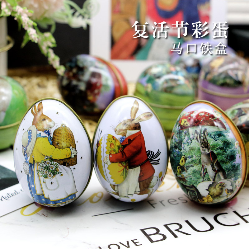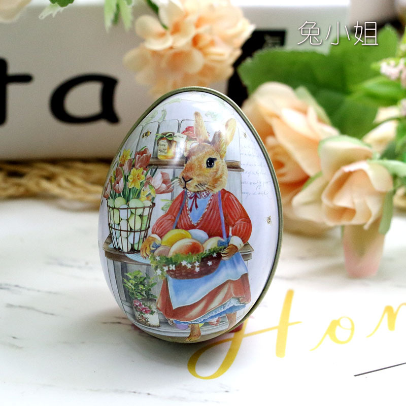 Яйцевидная маленькая жестяная коробочка ZAKKA, коробка для конфет в виде пасхального кролика, маленькая расписная упаковка, милая и забавная.