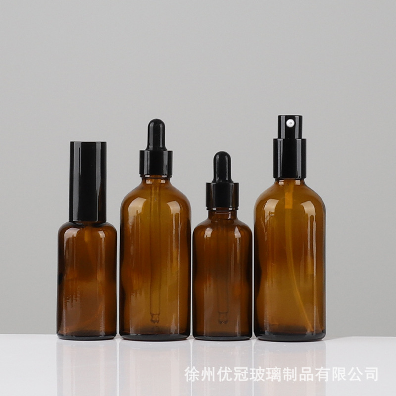 Оптовая продажа, коричневое стекло, 30 мл, бутылка эфирного масла, пластиковая бутылка-капельница, косметическая бутылка-распылитель, бутылка-спрей, бутылка для лосьона