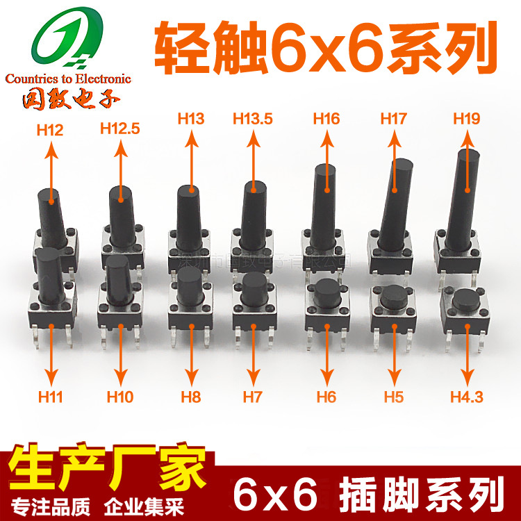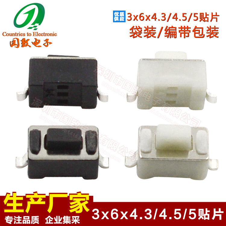 Сенсорный переключатель питания 6*6 Подключаемый модуль 3*6 патч 4*4/4,5*4,5 контакта 2*4*3,5 сбоку Нажмите кнопку серии