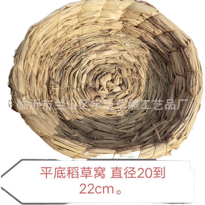 草窝尺寸20---24厘米左右具体尺寸不能确定手工编织稍有误差, 宇乐草编生产厂经销批发的鸟类、兔笼、狗笼、松鼠笼、龙猫笼畅销全国市场,在消费者当中享有较高的地位,公司与多家零售商和代理商建立了长期稳定的合作关系。实力雄厚,重信用、守合同、保证产品质量,以多品种经营特色和薄利多销的原则,赢得了广大客的信认。