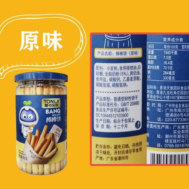 Tong Le Fang Bar Бисквитный батончик для печенья с оригинальным вкусом/овощи/кунжутный вкус 160 г/банка