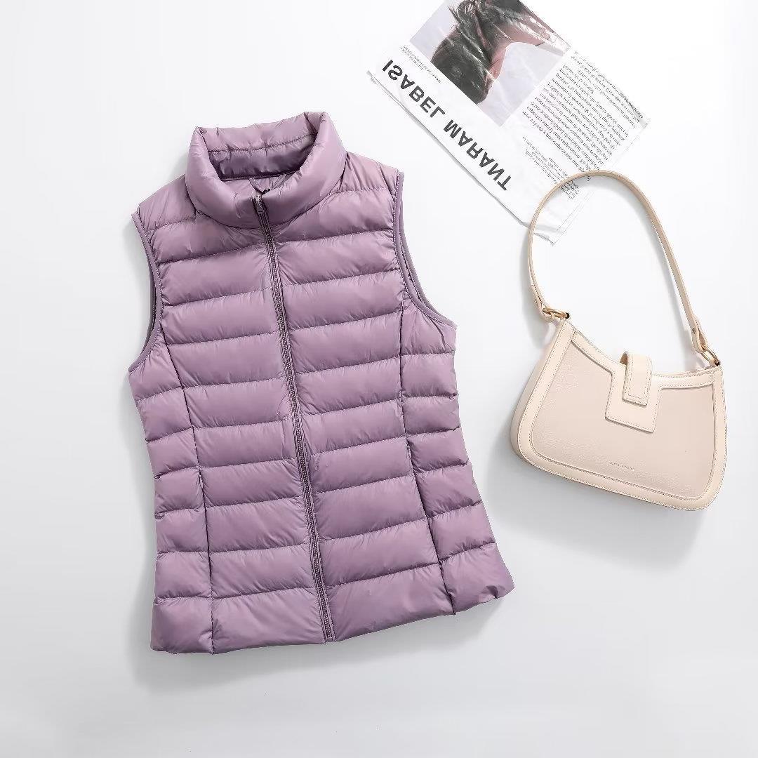 2023 Весна Осень Зима Пуховик Женский Легкий Белый Жилет На Утином Пуху Короткий Жилет Без Рукавов Узкий Приталенный Корейский Стиль Модный