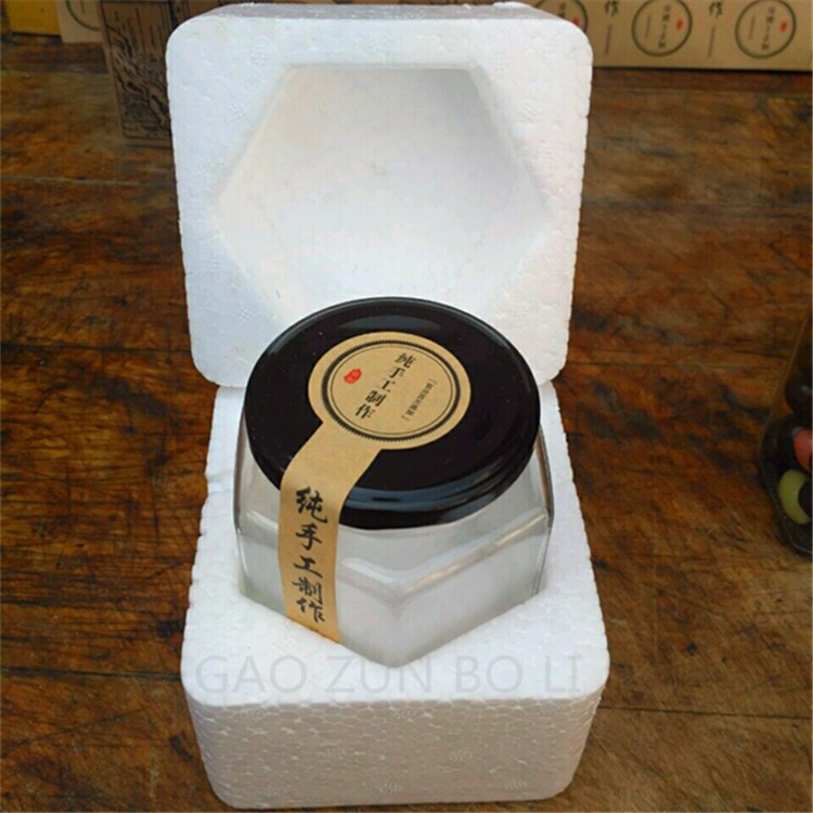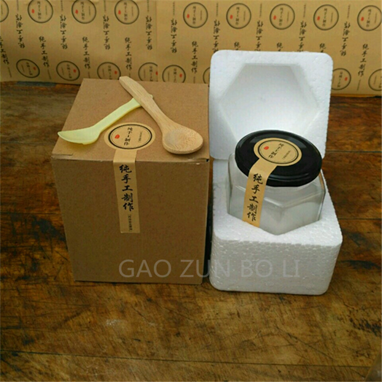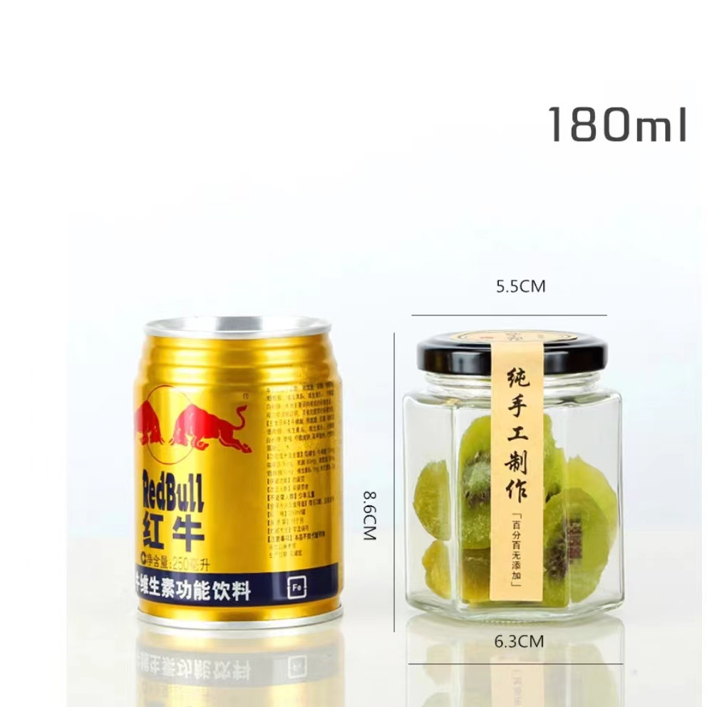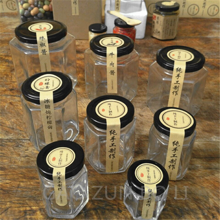 Оптовые шестигранные стеклянные бутылки для меда, флаконы для традиционной китайской медицины, баночки для мази, баночки для грушевого пюре, стеклянные банки для соуса чили, герметичные.