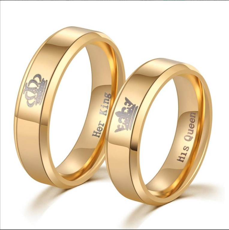 18K золото его королева ее король пара кольцо титана стали выгравированы палец кольцо wishebay пересечь границу