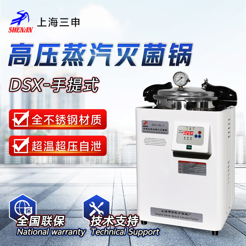 Паровой стерилизатор портативный не медицинский серии DSX, 18 л/24 л/30 л, производства Shanghai Shen'an