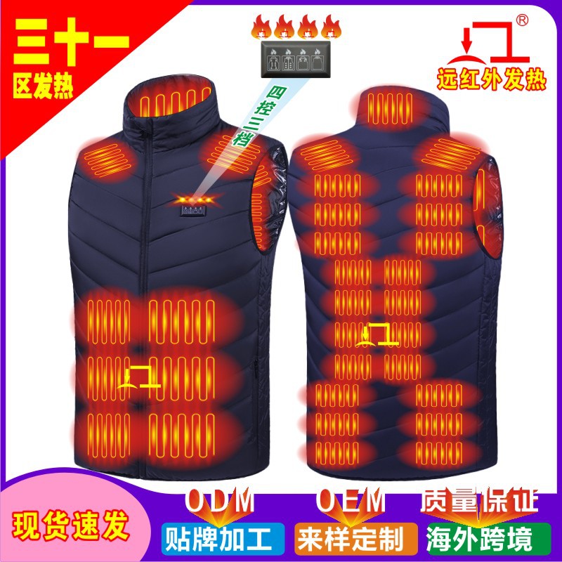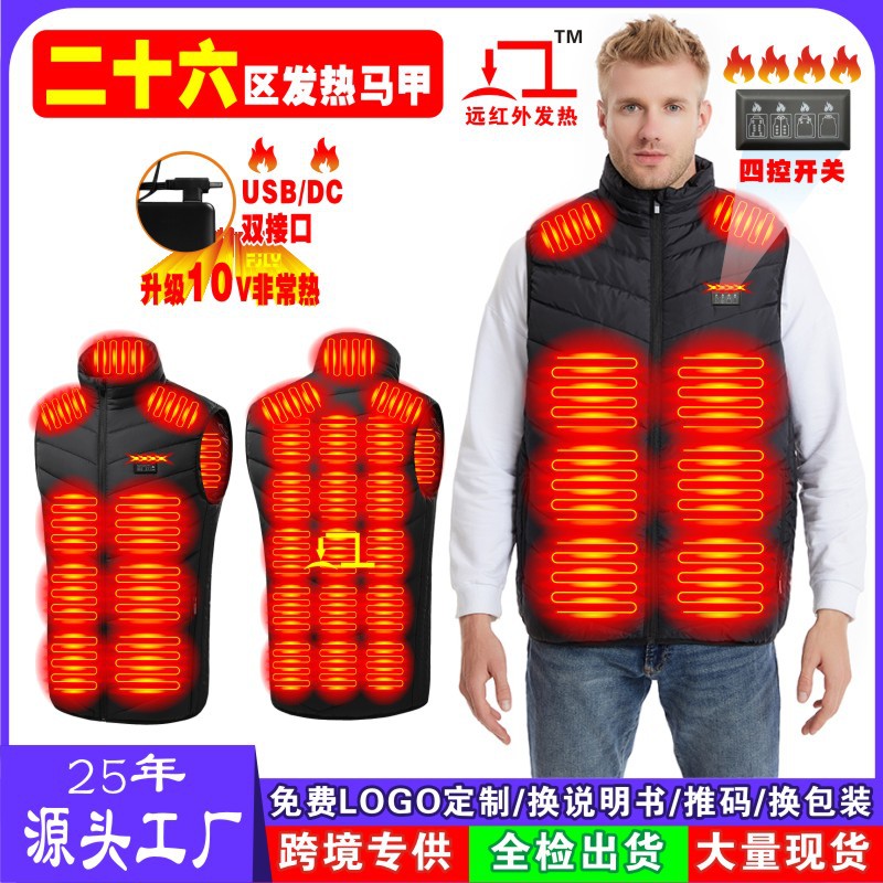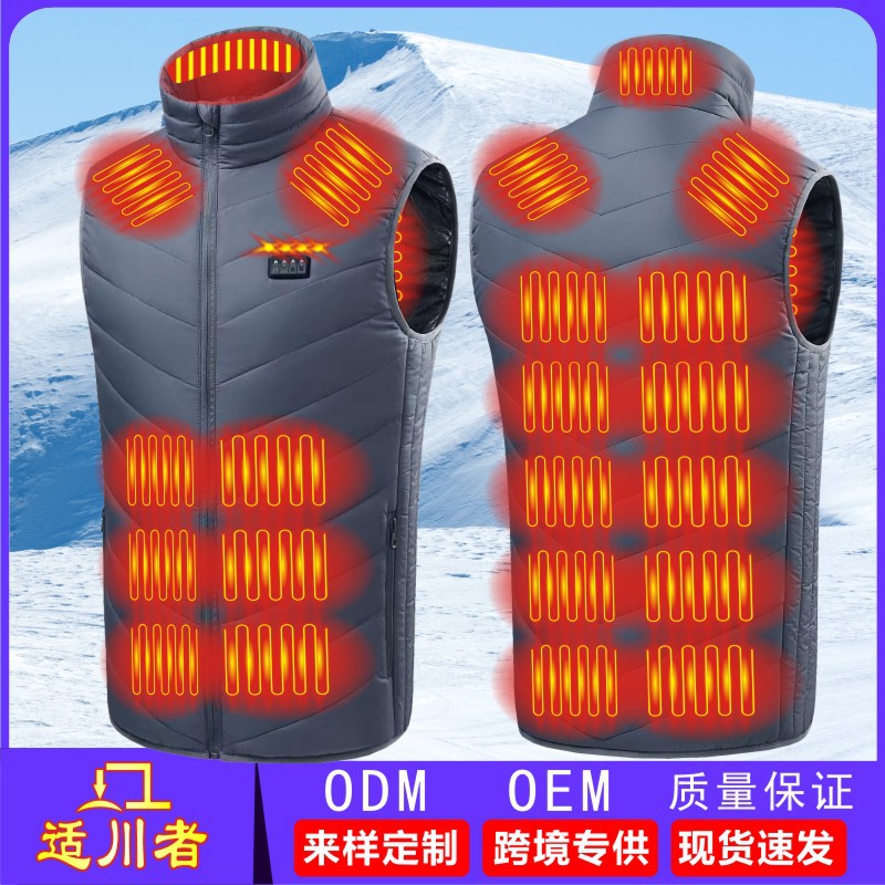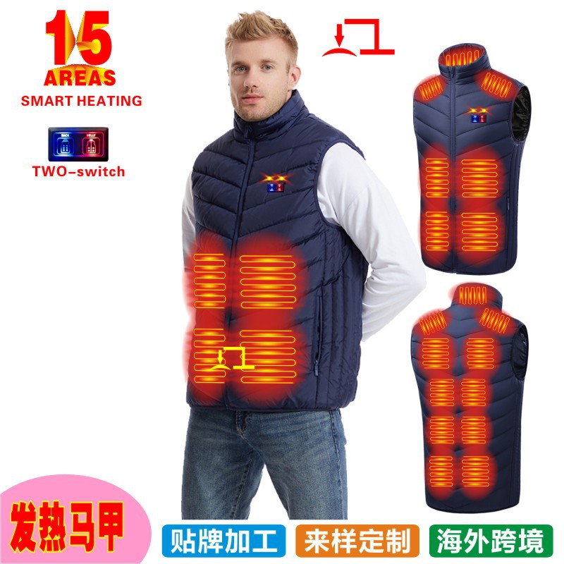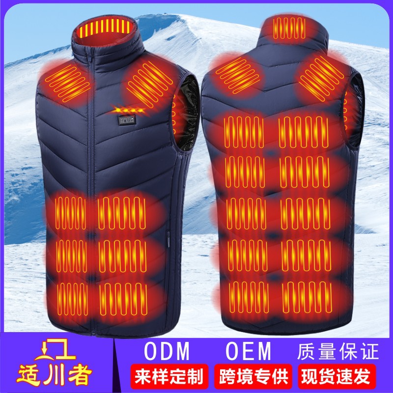 Трансграничный популярный зимний новый мужской жилет с подогревом воротника-стойки, хлопковый жилет с электрическим подогревом, умный теплый хлопковый жилет с постоянной температурой