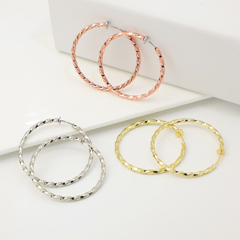 欧美时尚风耳环 原创麻花耳圈无耳洞弹簧耳夹 扭花小耳圈耳骨夹