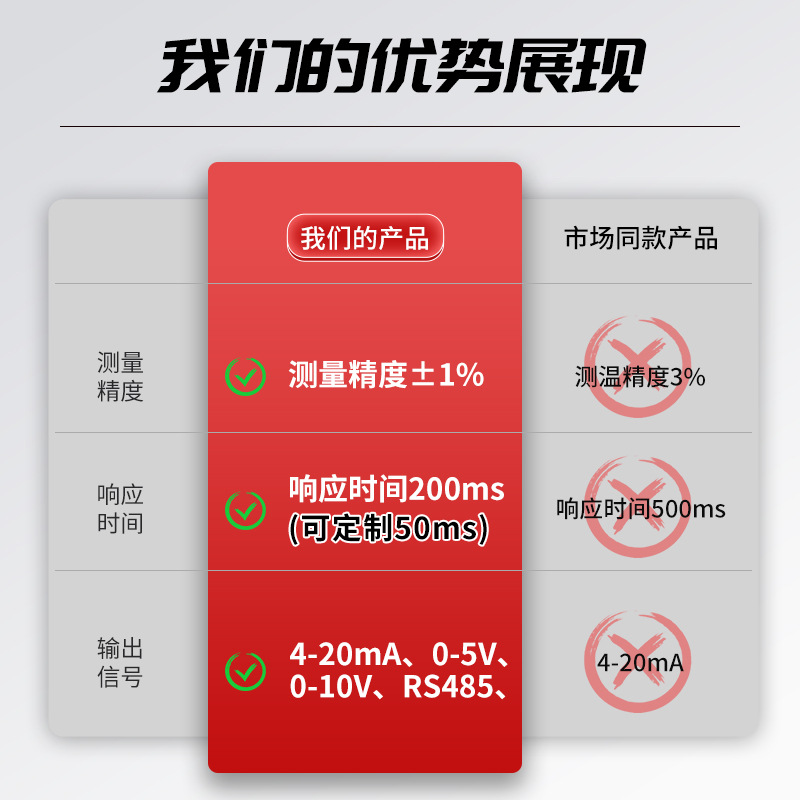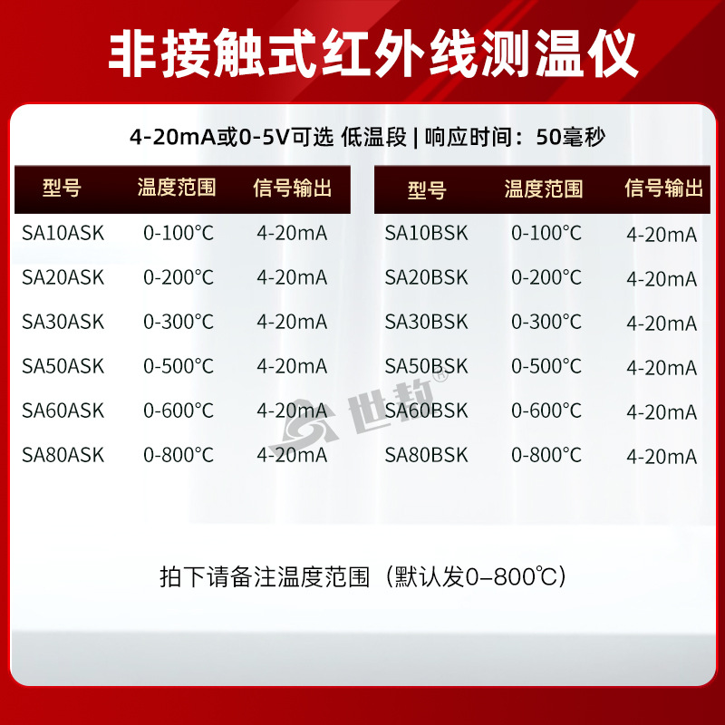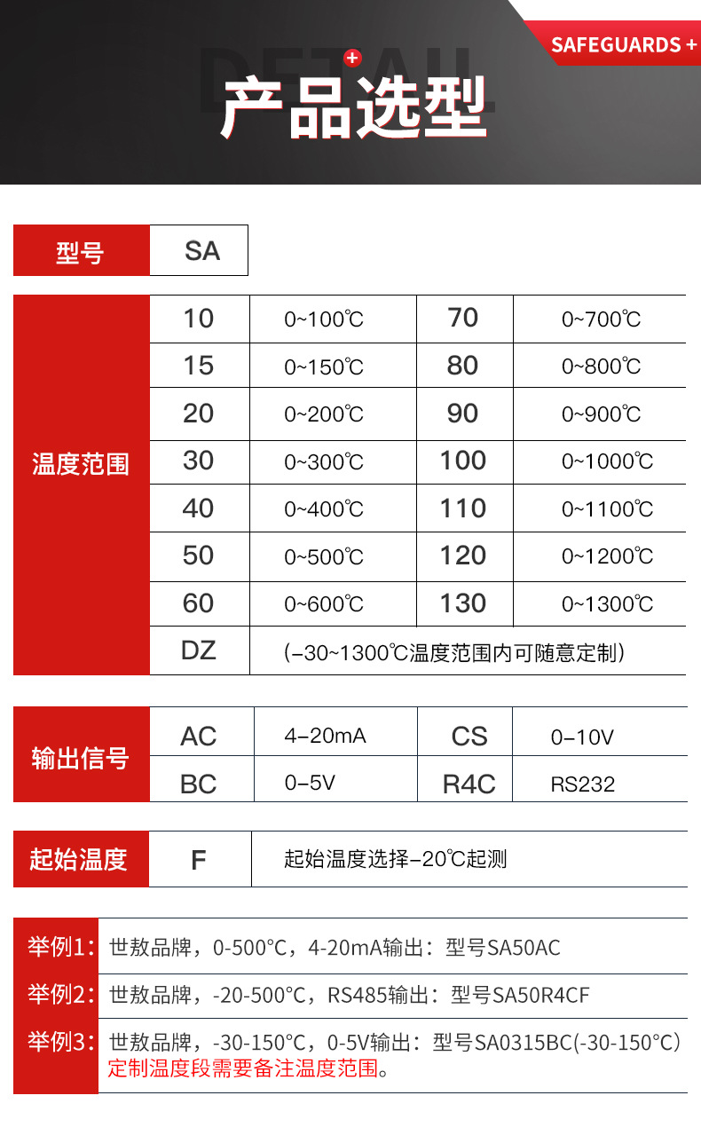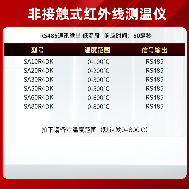 Диапазон температур 0-100 ℃ 4-20mA; Диапазон температур 0-150 ℃ 4-20mA; Диапазон температур 0-200 ℃ 4-20mA; Диапазон температур 0-300 ℃ 4-20mA; Диапазон температур 0-400 ℃ 4-20mA; Диапазон температур 0-500 ℃ 4-20mA; Диапазон температур 0-600 ℃ 4-20mA; Диапазон температур 0-700 ℃ 4-20mA; Диапазон температур 0-800 ℃ 4-20mA; Диапазон температур 0-900 ℃ 4-20mA; Диапазон температур 0-1000 ℃ 4-20mA; Диапазон температур 0-1200 ℃ 4-20mA; Диапазон температур-20-900 ℃ 0-5V выход; Диапазон температур-20-1300 ℃ 0-5V выход; Диапазон температур-20-900 ℃ 0-10V выход; Диапазон температур-20-1300 ℃ 0-10V выход; Диапазон температур-20-900 ℃ RS485 выход; Диапазон температур-20-1300 ℃ RS485 выход; 50ms быстрый отклик 4-20mA или 0-5V низкотемпературный сегмент; 50 мс Быстрый отклик 4-20mA или 0-5V Высокотемпературный сегмент; 50 мс Быстрый ответ RS485 Выход низкотемпературного сегмента