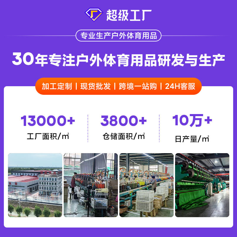《山东滨州强盛体育用品有限公司》建于一九九八年,坐落于孙子故里,惠民县南25公里李庄镇工业园(位于济南至滨州220国道中段)。是全国绳网生产基地。环境优美、交通便利。本公司是一家独资民营企业,注册资金200万元,技术人员8名。是一家从事绳网系列产品开发、研制、加工、生产于一体的企业。