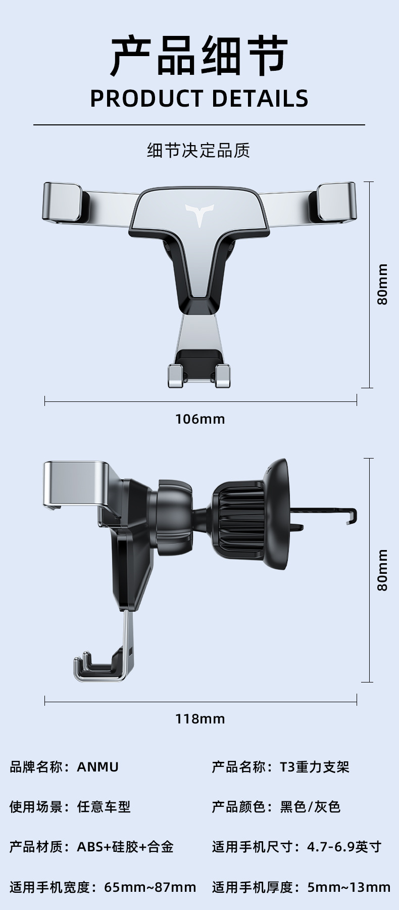 Серебряный воздуховыпускной патрубок T3 в стиле спиральной зазубрины; Модель T3 с черным воздушным выходом и спиральной зазубриной; Клейкая версия панели приборов T3 серебристого цвета; T3 черная клейкая версия приборной панели
