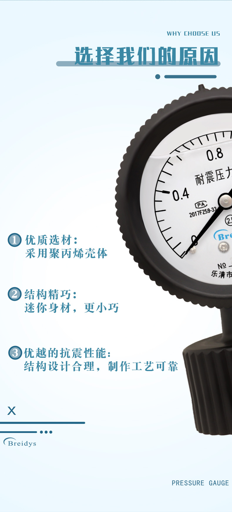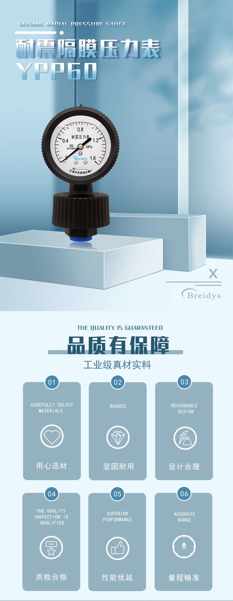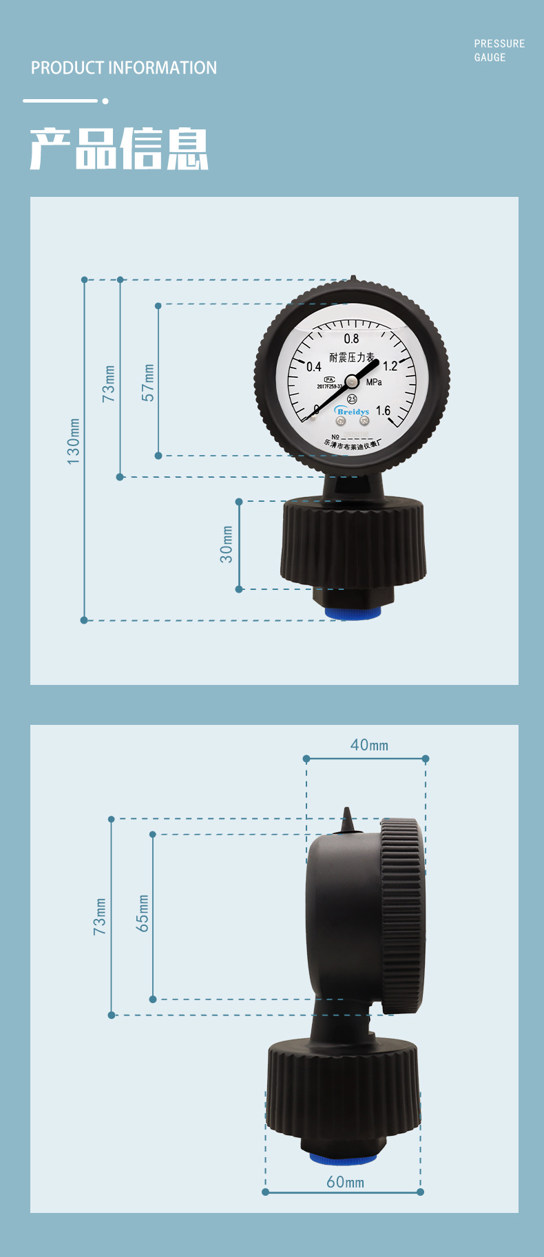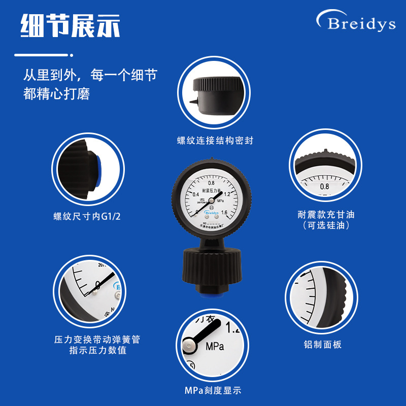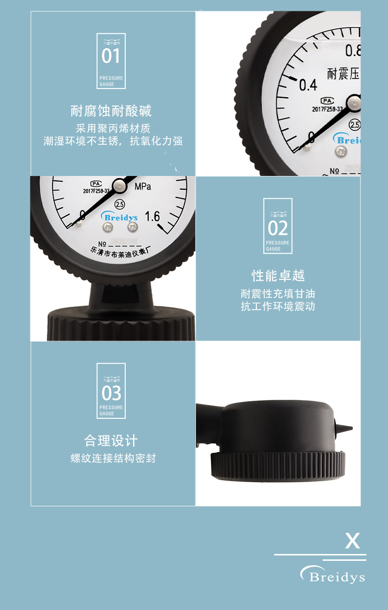 Мембранный манометр из полипропилена YPP-60 Технические характеристики прямых продаж с завода, полная стойкость к кислотной и щелочной коррозии 2 кг/4 кг/6 кг