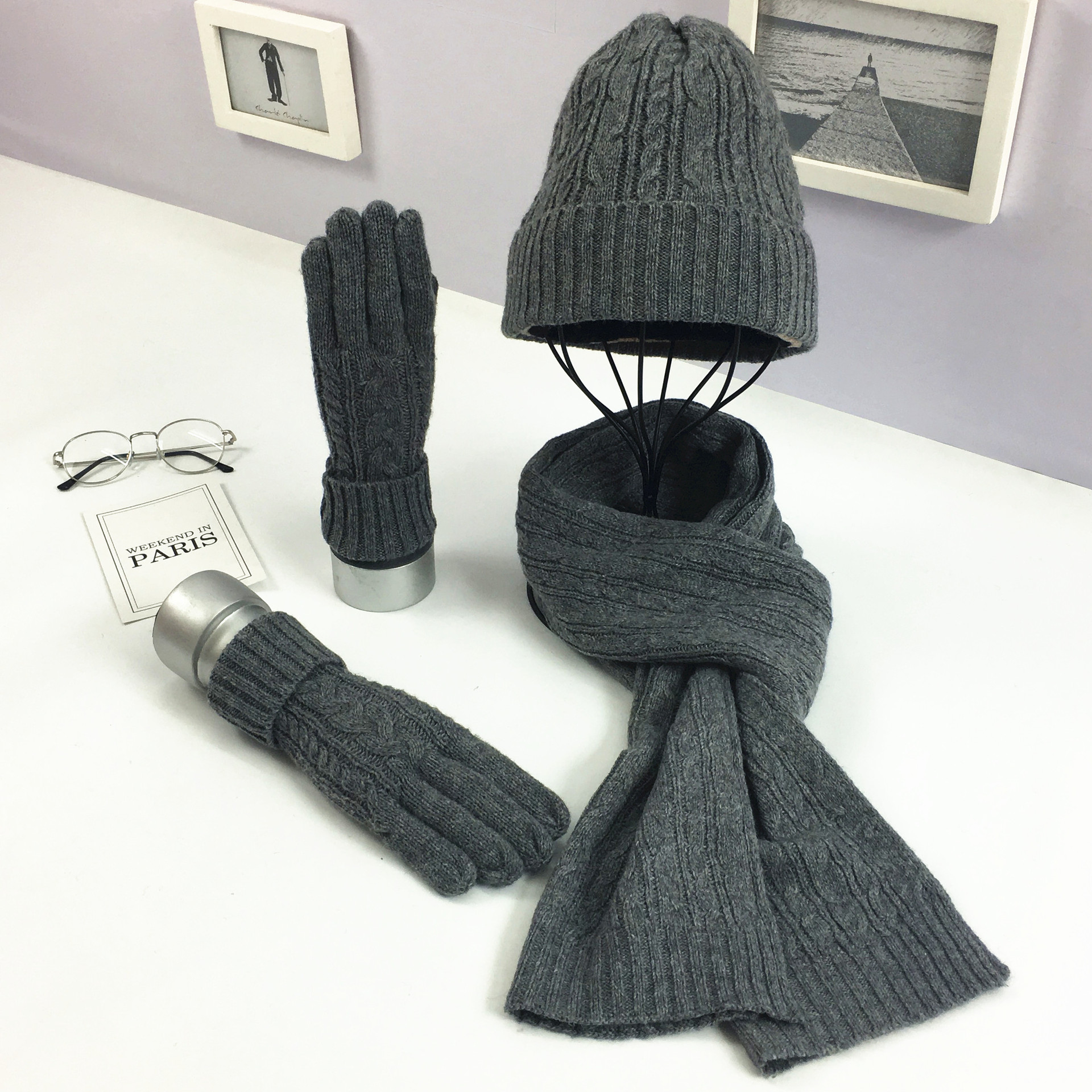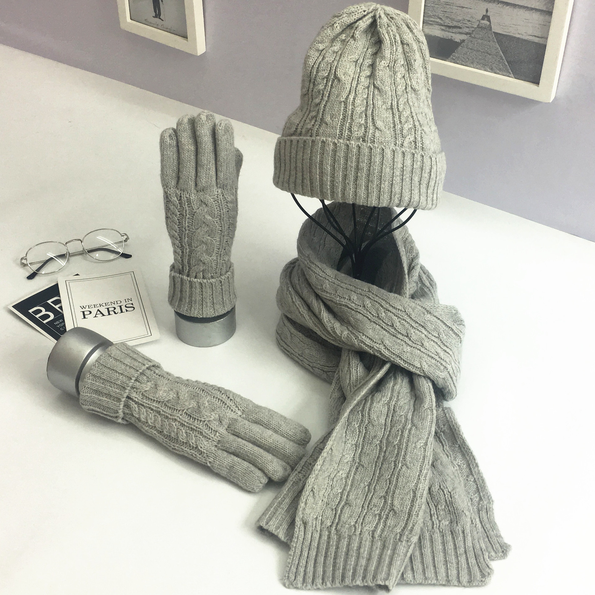 Европейские и американские Новые осенне-зимние теплые перчатки, модный вязаный шерстяной костюм, шапка, шарф, комплект из трех предметов, женские волосы