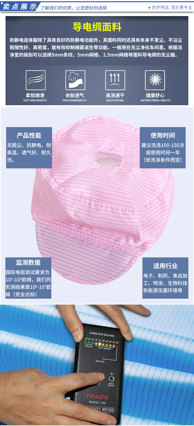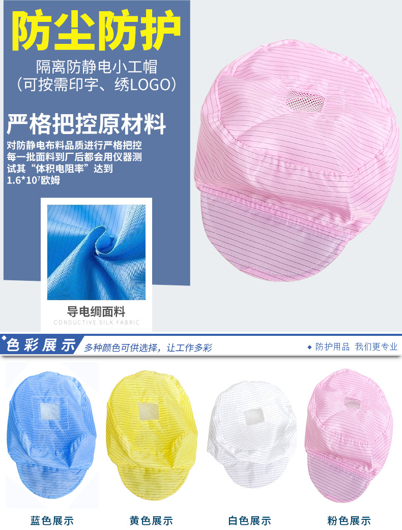 防静电服配套帽子 防静电透气网眼男女小工帽 无尘净化车间工作帽