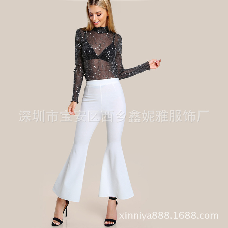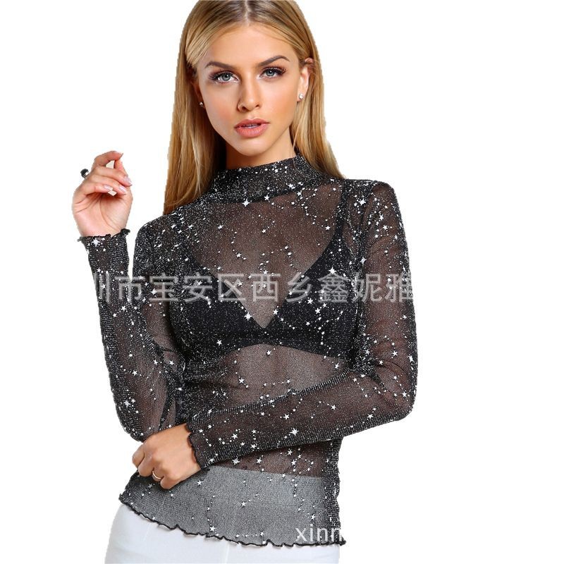 2025 AliExpress Amazon, европейская и американская весенне-летняя новая стильная сексуальная сетчатая женская базовая рубашка с высоким воротником.