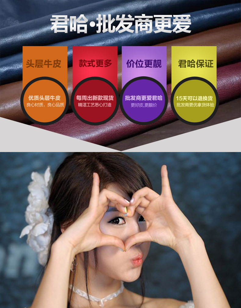 爱皮草,爱君哈,头层牛皮腰带现货款式多,新款多,专注皮带批发和皮带订做,喜欢和批发商,品牌商,网络经销商合作,零买的亲绕道,爱皮草爱牛皮腰带的亲多关注君哈。批现货的请注明颜色各多少条。如果亲想订做我们没有的靓带,请把产品图片或样带及要求发君哈,君哈为亲打造心仪的头层牛皮腰带哈,欢迎咨询订购。