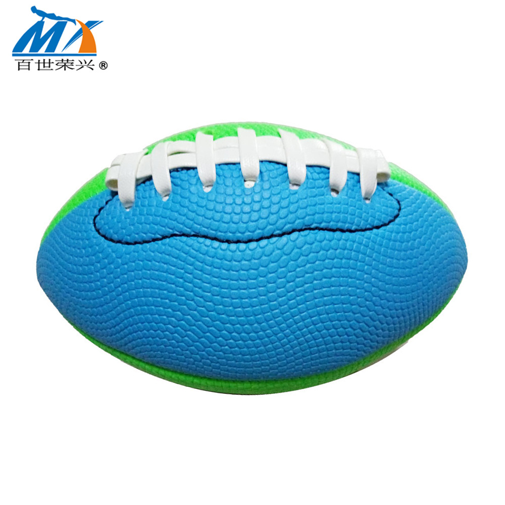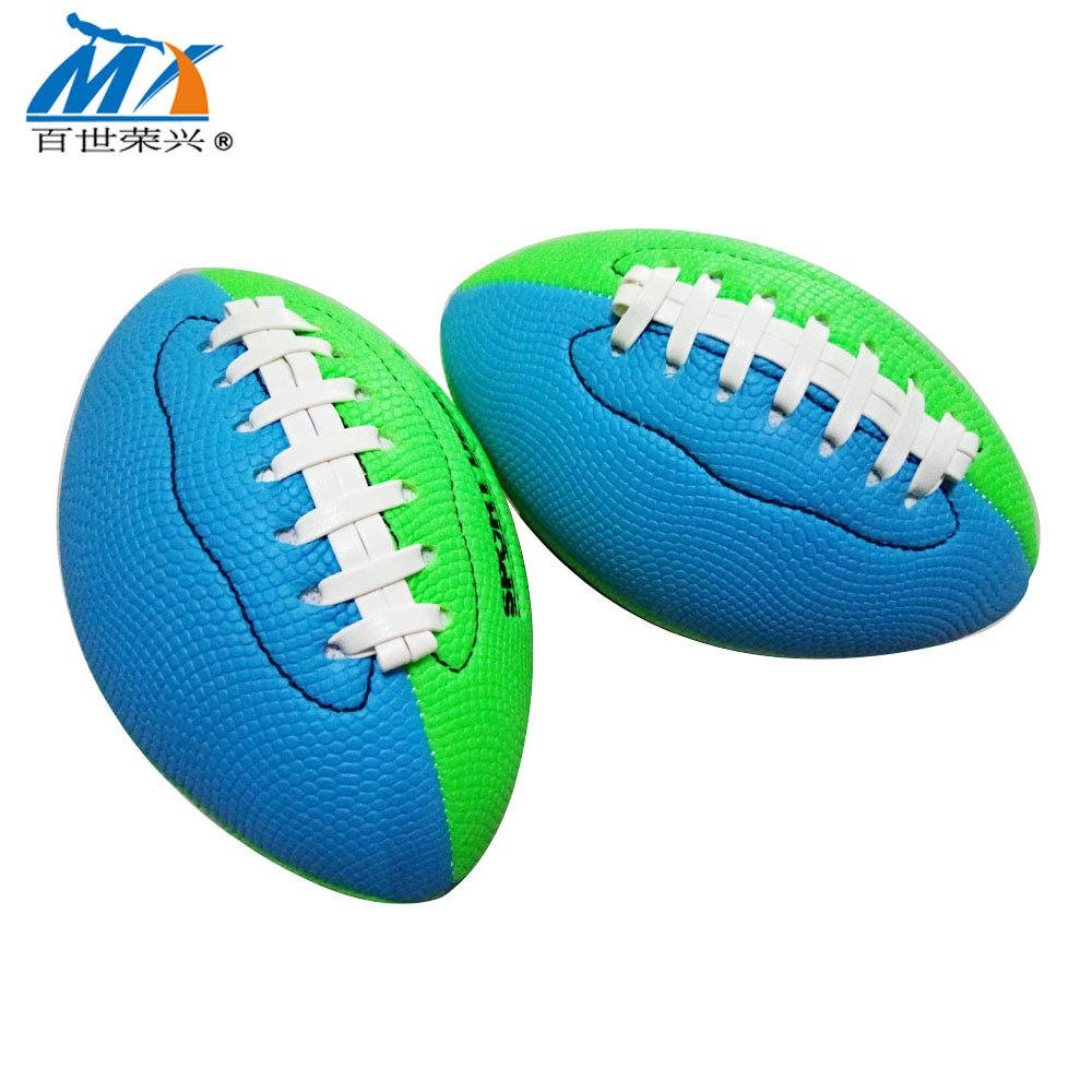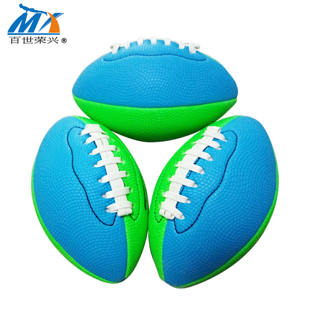Недорогая поставка регби № 1 американский футбол спиральные частицы флуоресцентные сине-зеленые швы