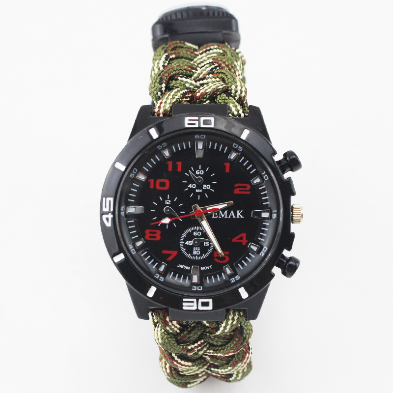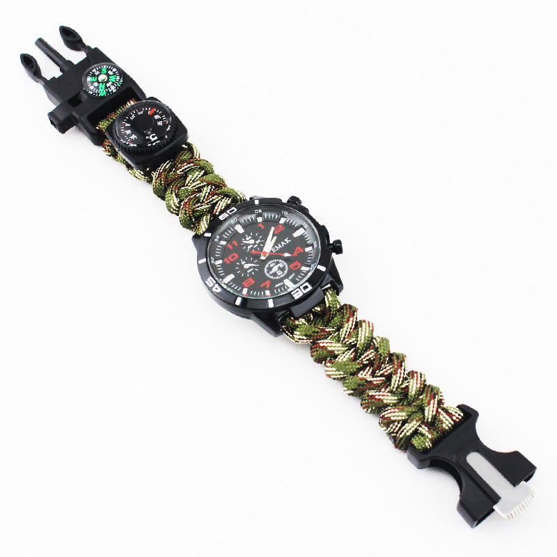 Многофункциональные спортивные часы для активного отдыха с плетеным ремешком из паракорда, водонепроницаемые, с нейлоновым ремешком для выживания и функцией огнища.