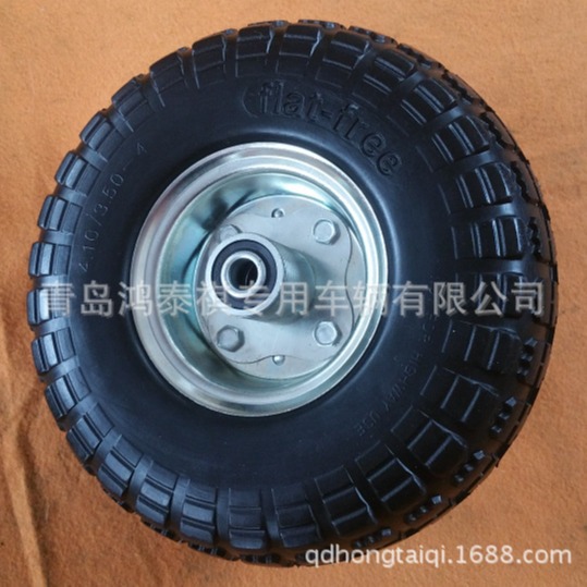 我公司专业生产各种型号的PU发泡轮,橡胶轮,实心轮等手推车轮胎。