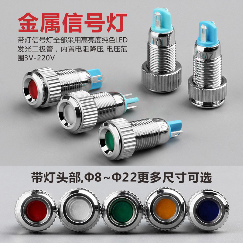 Yongqian 12 мм металлический индикатор светодиодный индикатор сигнала водонепроницаемый индикатор питания 12 В 24 В 220 В