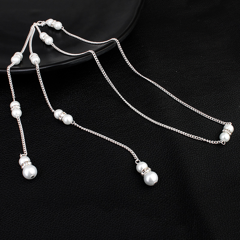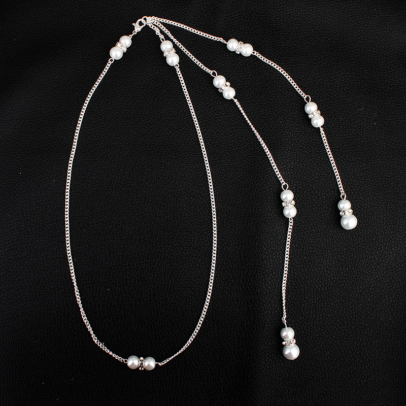 Пляжный праздничный стиль сексуальное ожерелье европейский и американский алмаз тело цепи жемчуг кулон кисточка задней цепи платье аксессуары