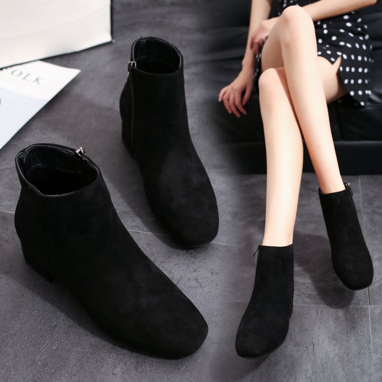 2024 Новый стиль каблуков на среднем каблуке простой корейский замши женские ботинки короткие ботинки дикие ботинки Martin сапоги модные женские ботинки