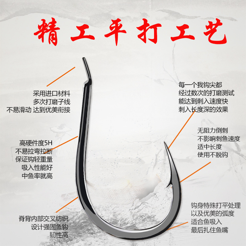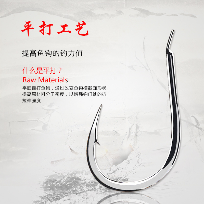 平打伊势尼散装鱼钩是采用进口钢材加工而成,每道工序都是分工完成,品质超过市场任何一款普通钢材和国内好钢材的刚性,从而打破市场小钩不易平打的局势。