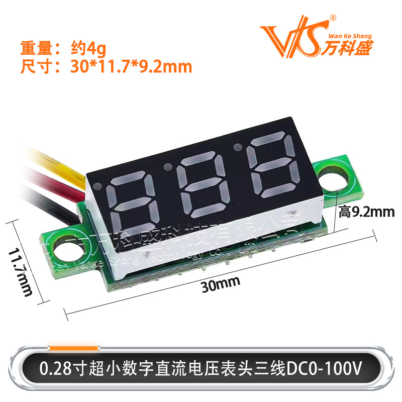 0,28-дюймовый сверхмалый цифровой вольтметр постоянного тока, цифровой дисплей, регулируемый трехпроводной DC0-100V вольтметр батареи