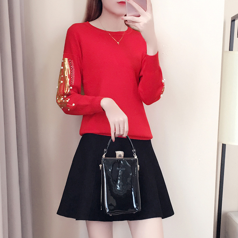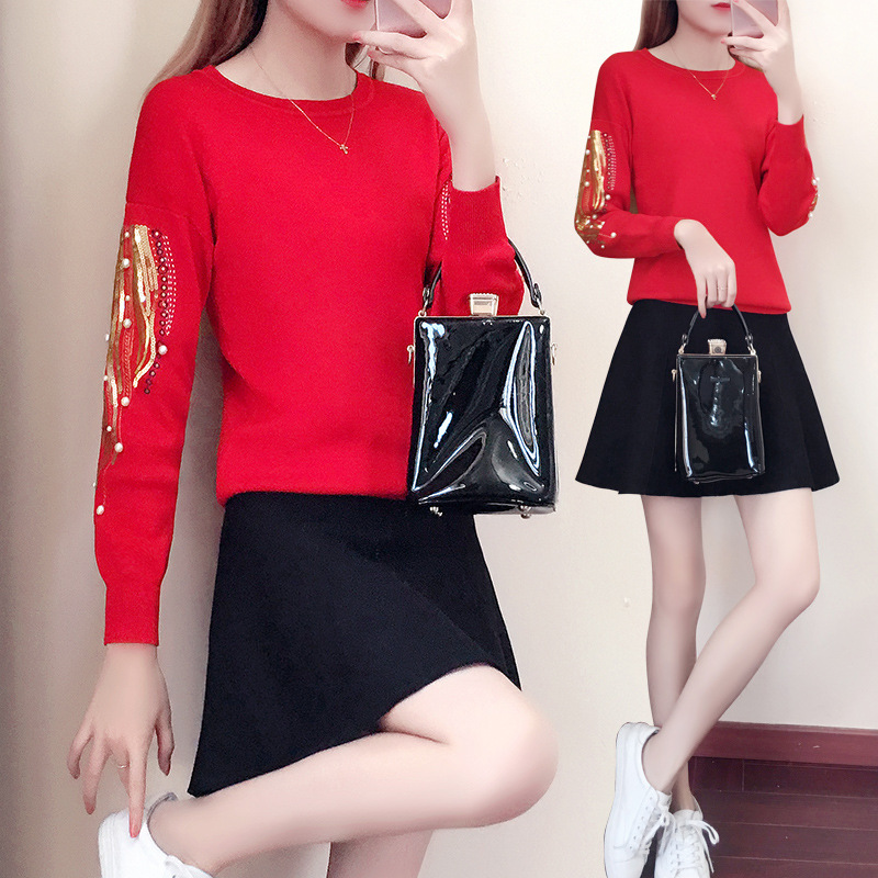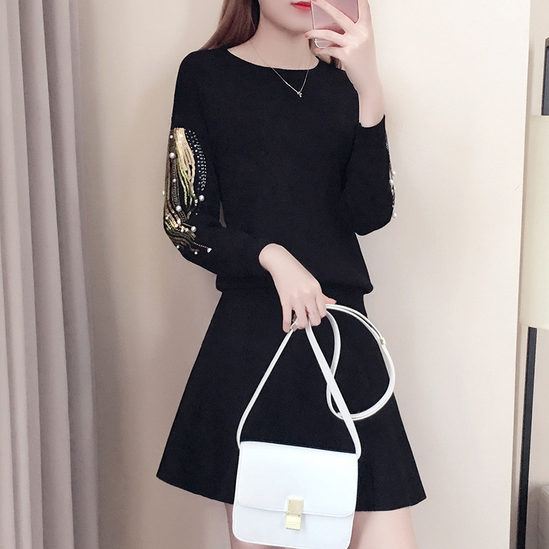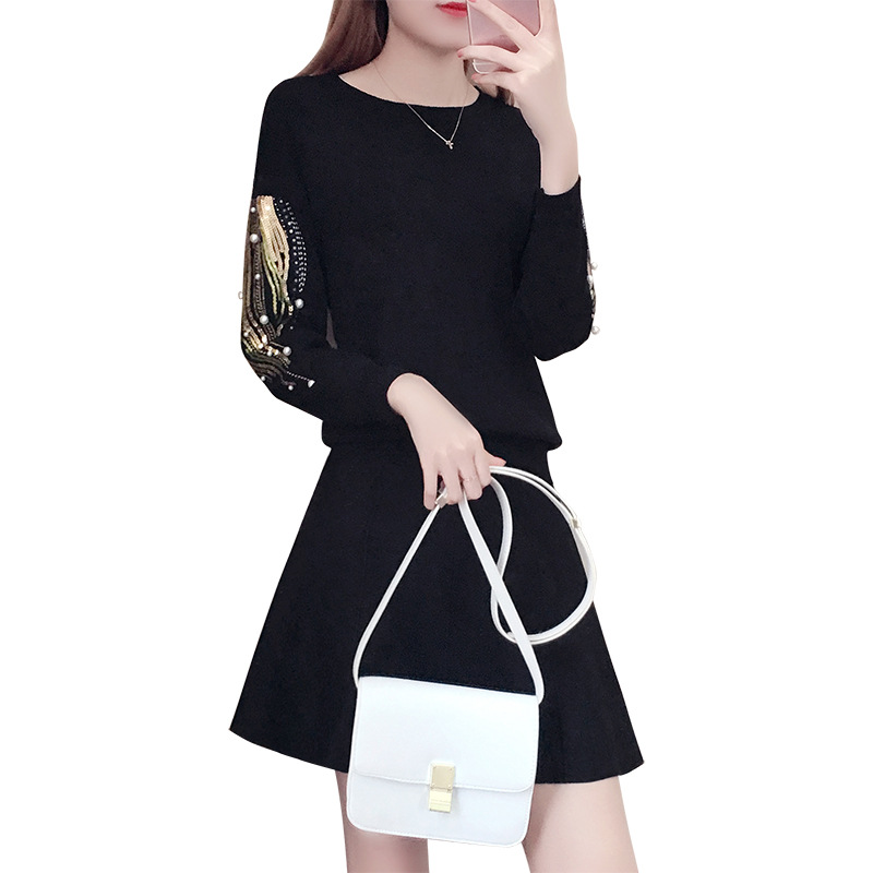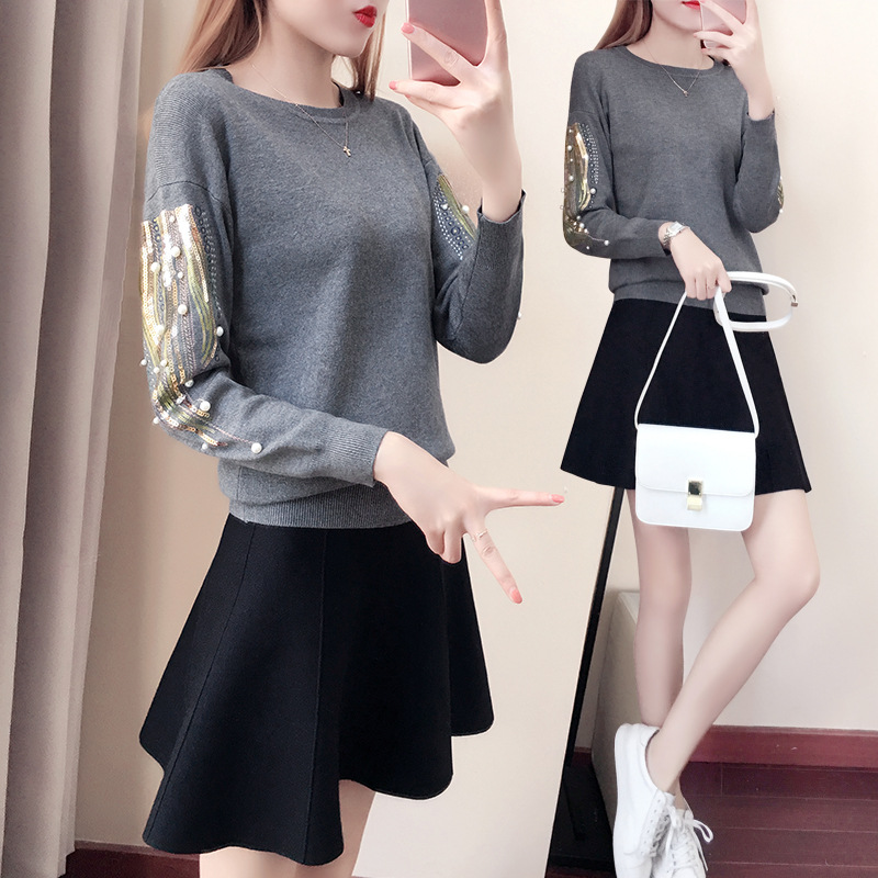 Трикотаж, женский костюм-юбка из двух частей, весна, новая женская одежда больших размеров, модный костюм для полных девочек, свитер с вышивкой, короткая юбка