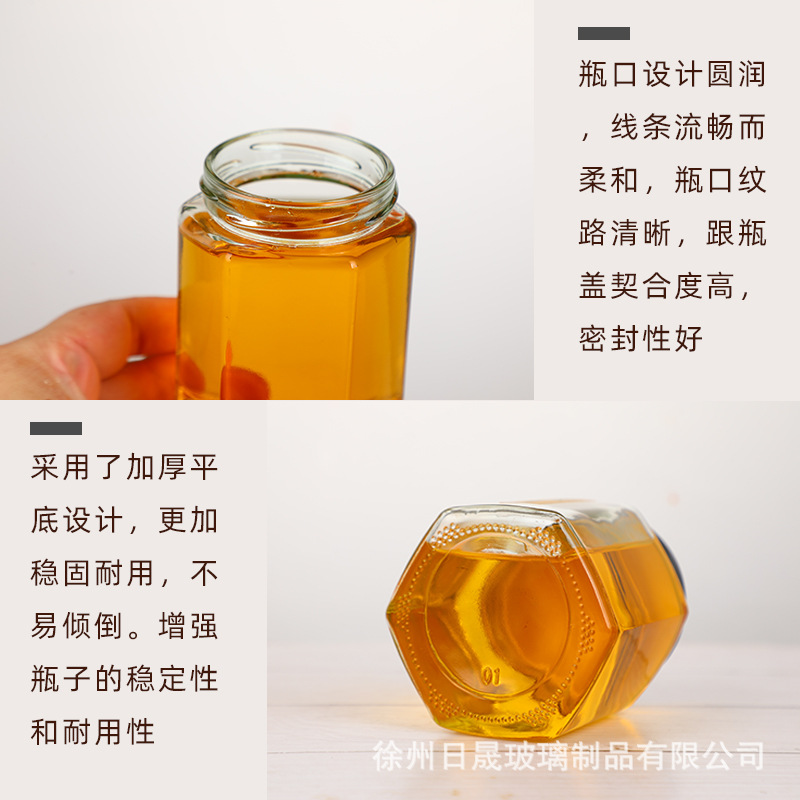 Стеклянная бутылка с гексагональным медом 1 кг с перцем в бутылке с соевым соусом утолщенный с крышкой прозрачный запечатанный пищевой резервуар для консервированной бутылки