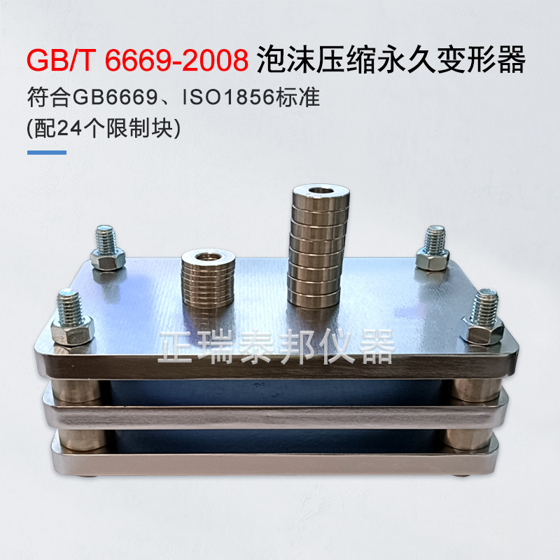 GB 7759 (старый стандарт) тип A (с 27 ограничительными блоками); GB 7759 (старый стандарт) тип B (с 27 ограничительными блоками); ГБ 1683-2018 Определение постоянной деформации при сжатии с постоянным напряжением с использованием 3 предельных блоков; GB 7759-2015 (новый стандарт) деформатор сжатия с 3 ограничительными блоками типа A/B каждого типа; GB/T 6669-2008 Мягкий пенополиуретан с изменением давления и 24 ограничительными блоками; Компрессионный деформатор с фиксирующим штифтом