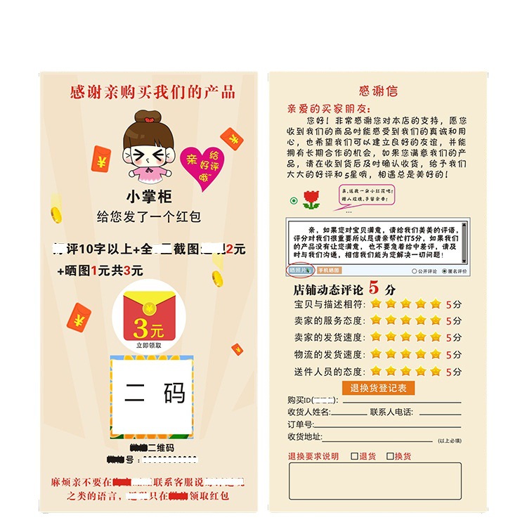 印上码,正反面可随意搭配,内容可更改