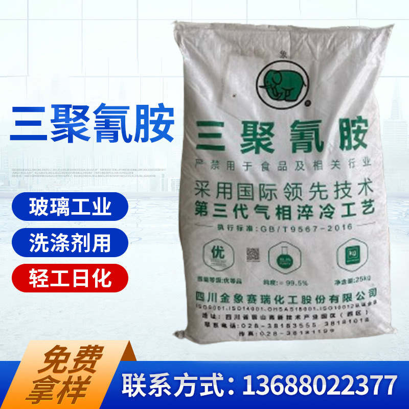 制造三聚氰胺甲醛树脂的主要原料,用作有机元素分析试剂,也用于有机及树脂的合成作皮革加工的鞣剂和填充剂。与甲醛缩合聚合可制得三聚氰胺树脂,可用于塑料及涂料工业,也可作纺织物防折、防缩处理剂。其改性树脂可做色泽鲜艳、耐久、硬度好的金属涂料。