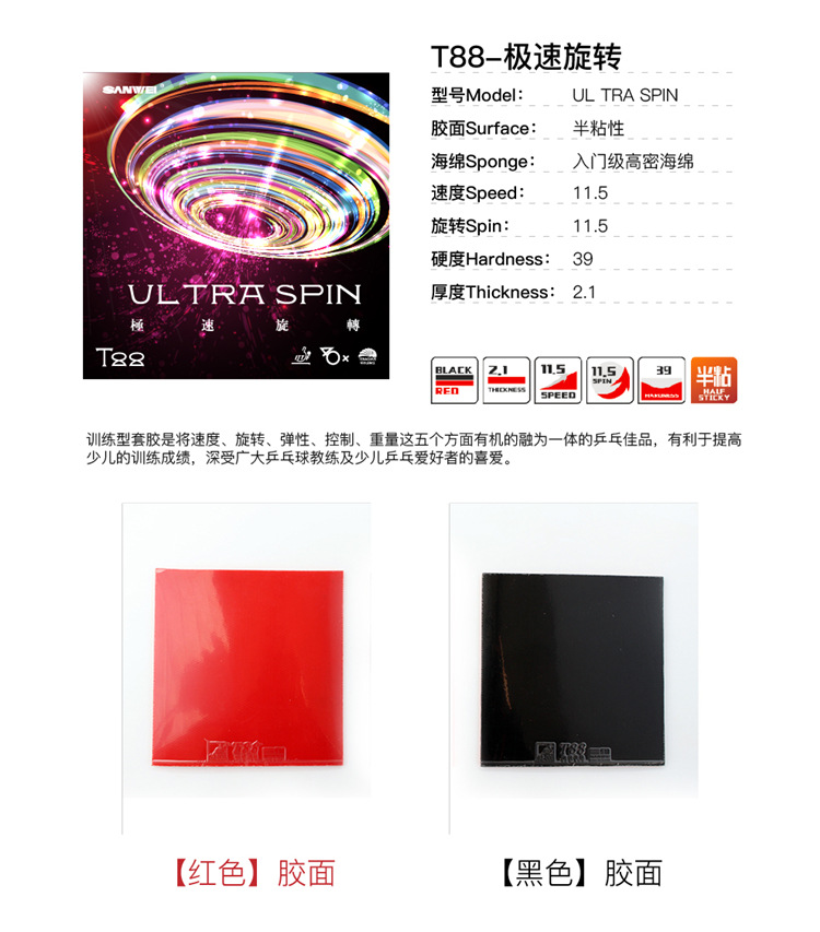 Трехмерный резиновый сверхскоростной вращающийся клей для настольного тенниса обратный клей тренировочный Резиновый рукав для взрослых и детей, начинающих