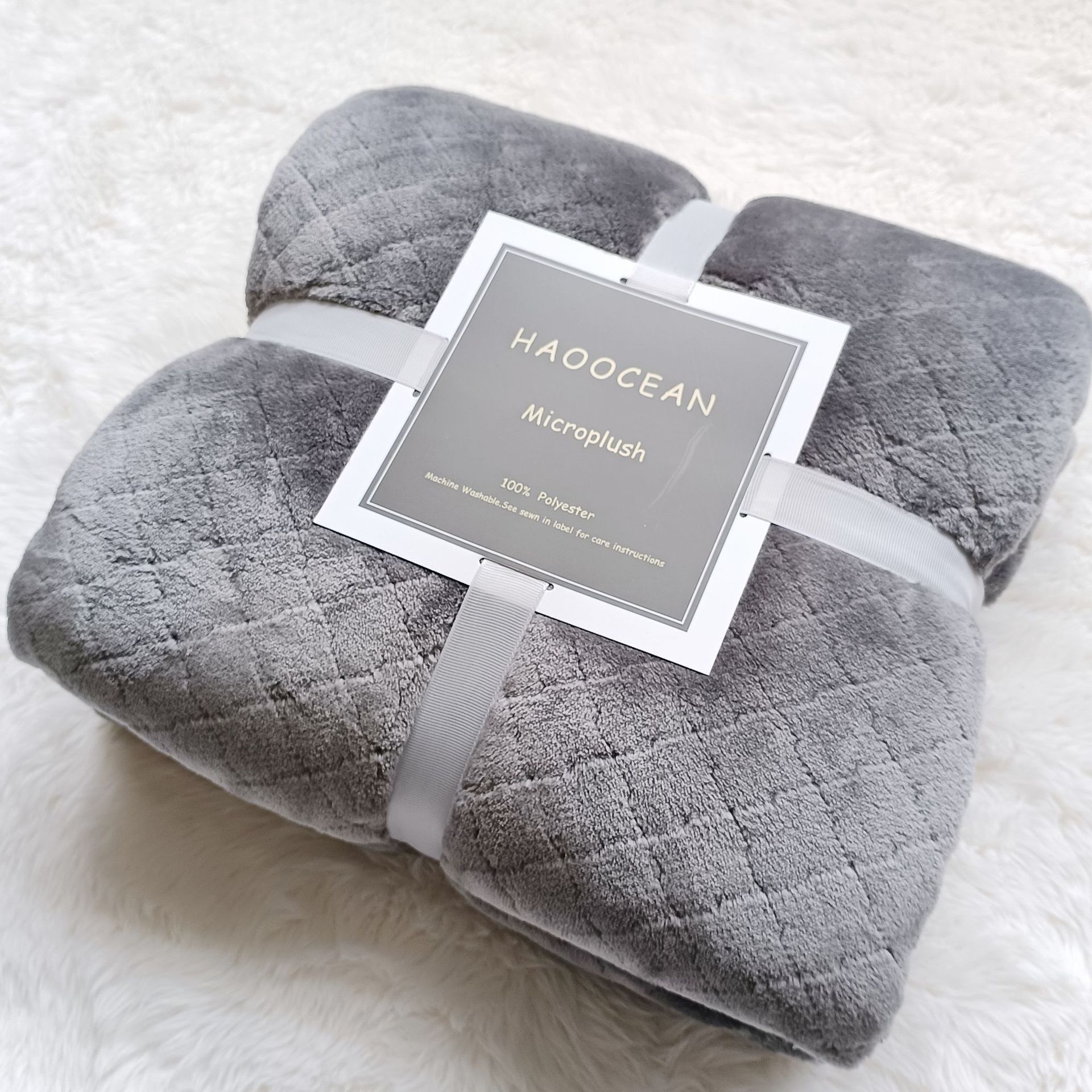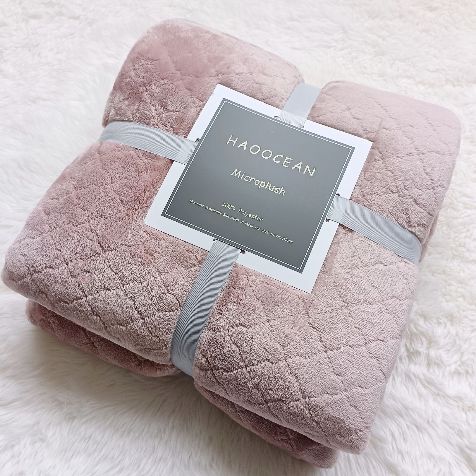 - 克重380gsm,采用的工艺是梅花格提花,手感柔滑,厚实,款式新颖,比普通加厚的毛毯还是要厚实很多的