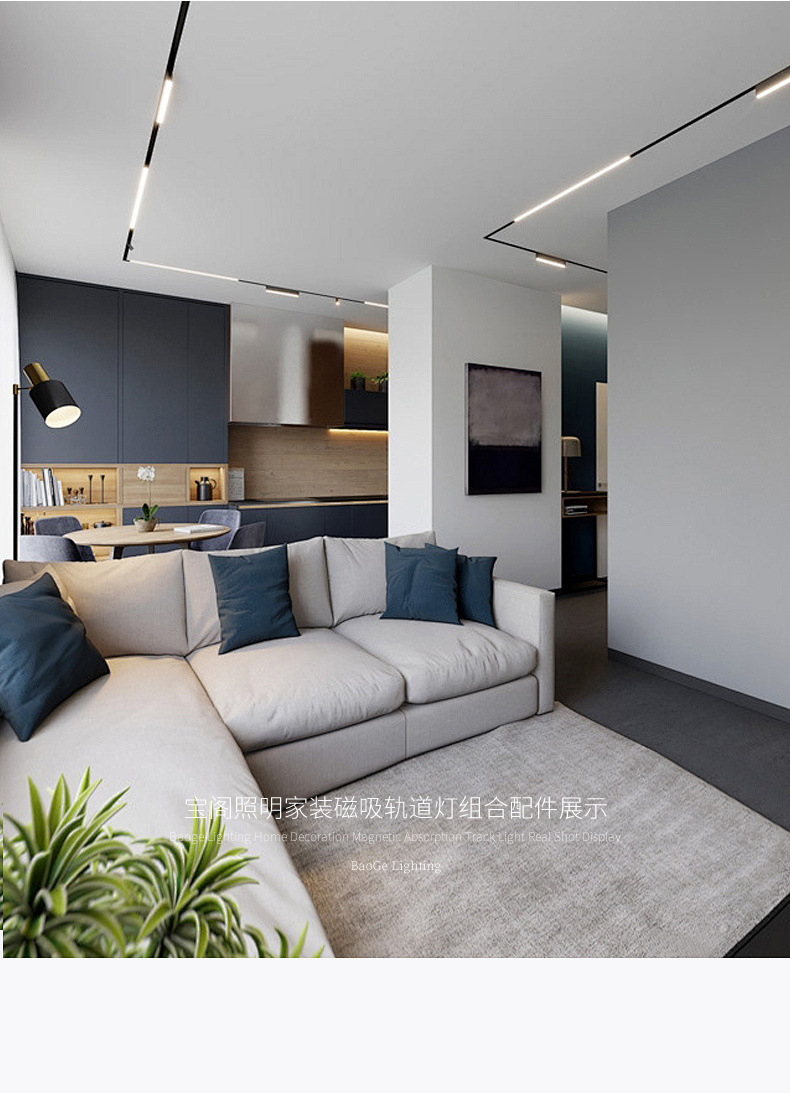 Магнитный светильник Baoge, магнитная дорожка, скрытый, без основного освещения для гостиной, 20, предварительно встроенный встроенный бытовой светодиодный трековый светильник