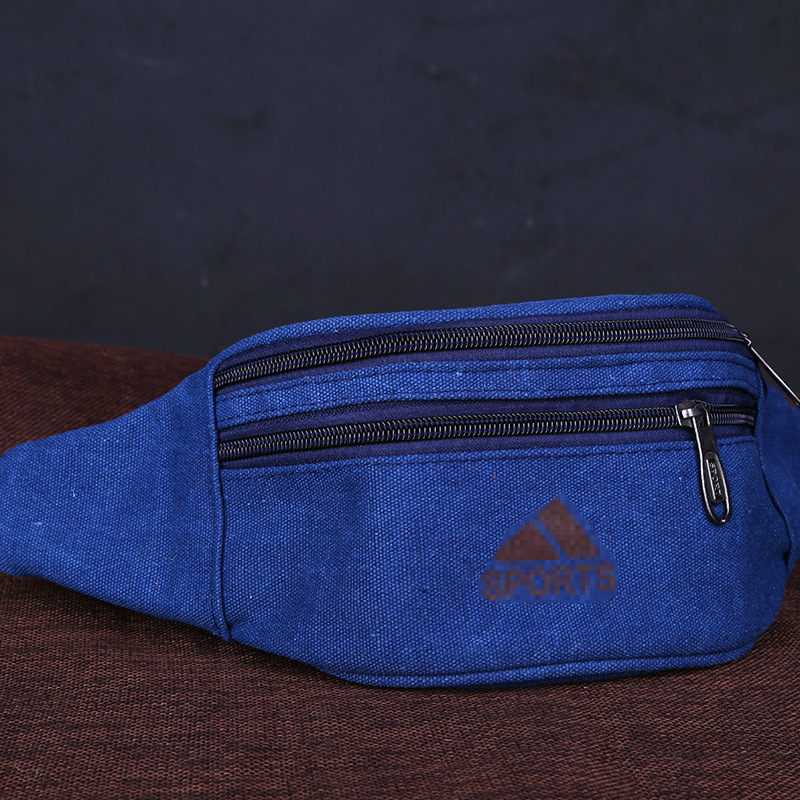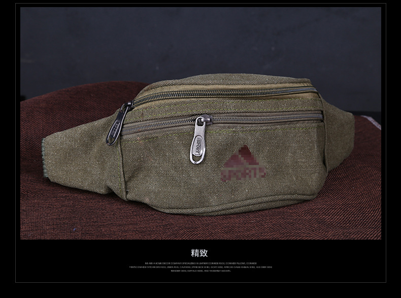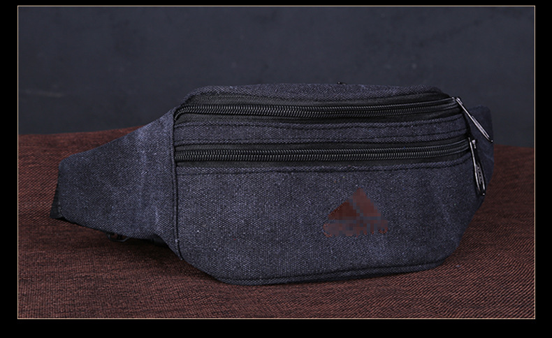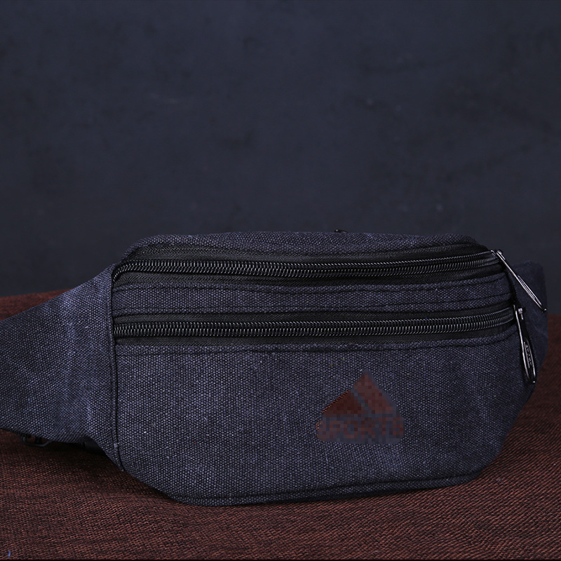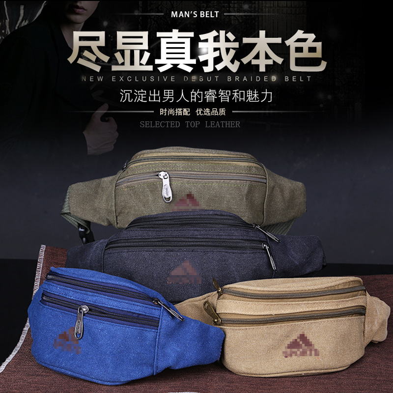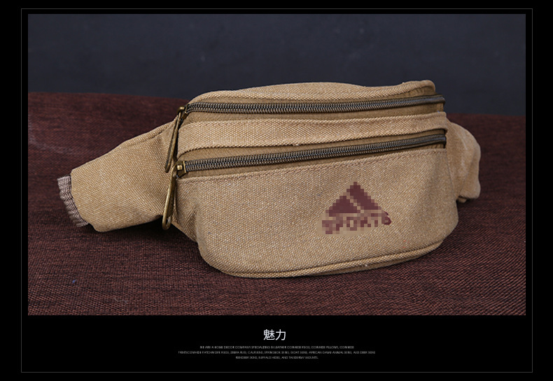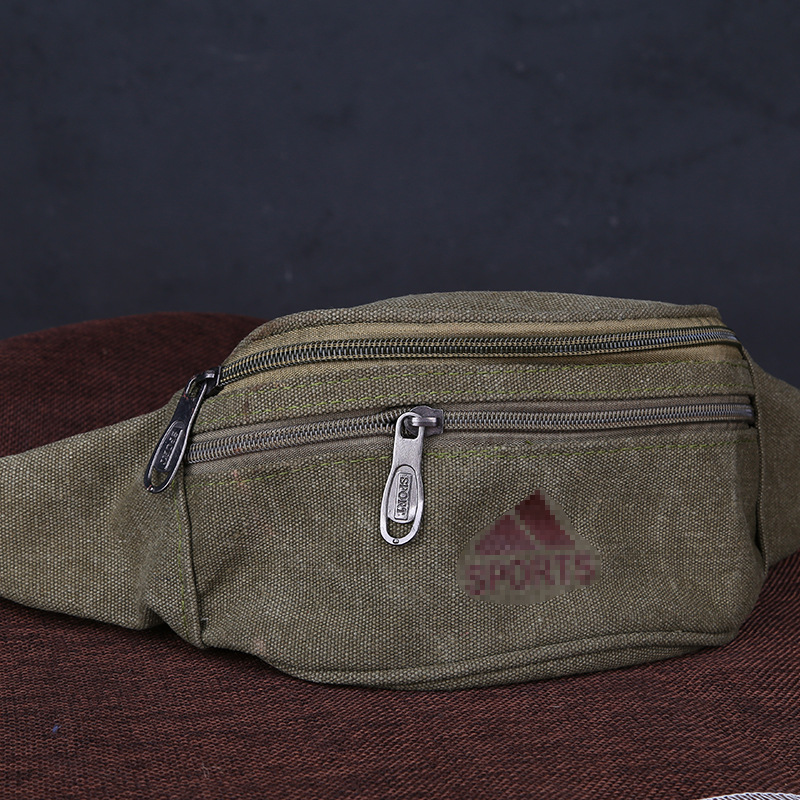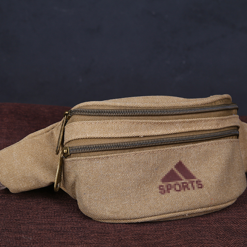 В наличии Поставка Мужская холщовая поясная сумка Двойная молния Термоусадочная поясная сумка Мужская облегающая многофункциональная сумка