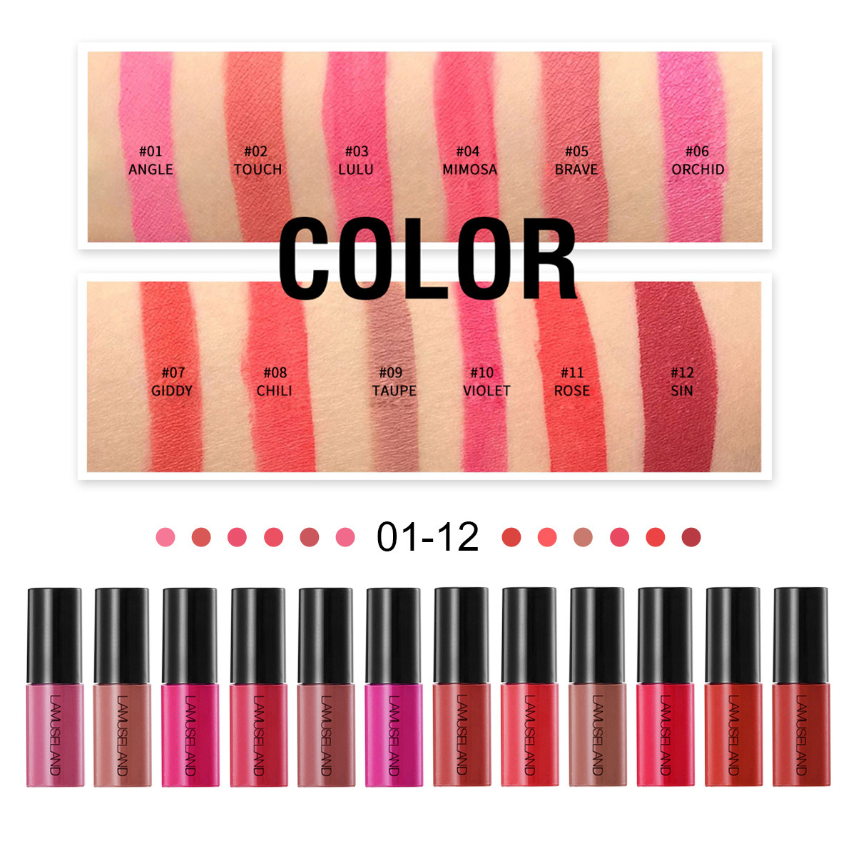 LAMUSELAND ramuslan 12-цветный блеск для губ, образец матовый, нелегко наклеивается, чашка для длительной жидкой помады