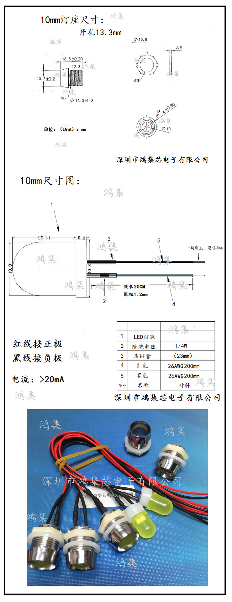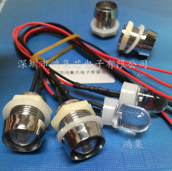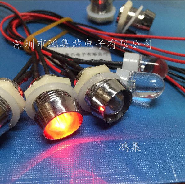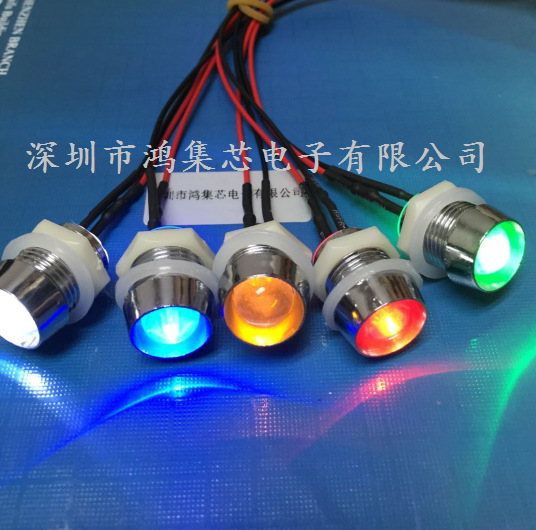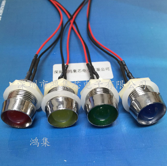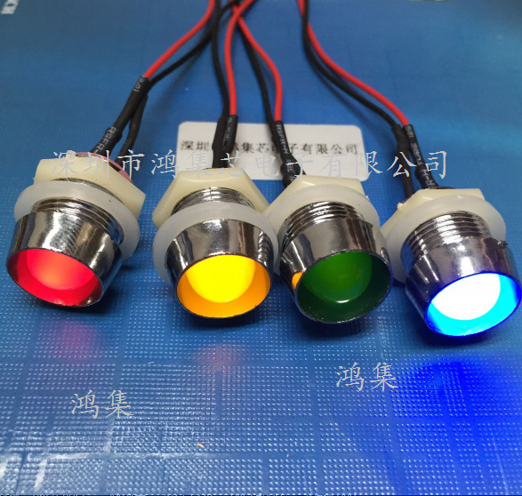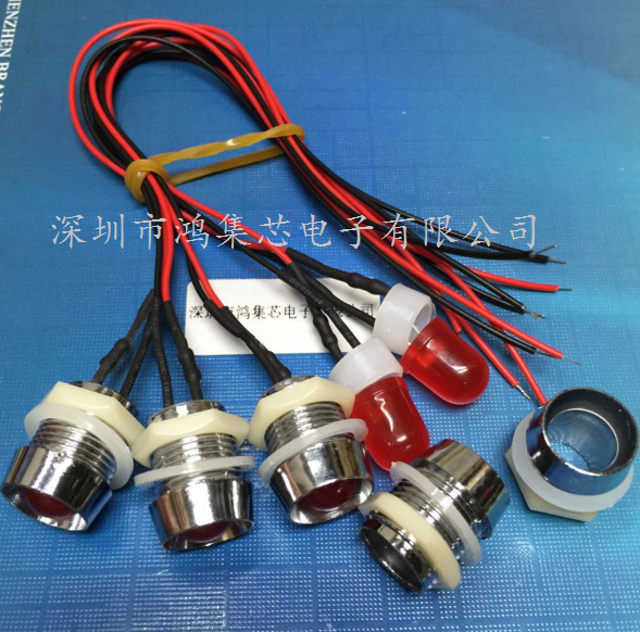 Светодиодный индикатор 6В-12В/24В, проводной, 10 мм, с металлическим основанием, красный, желтый, синий, зеленый, с отверстием 13 мм