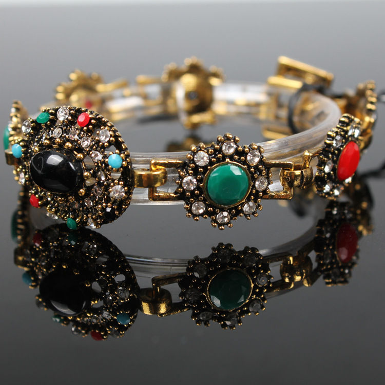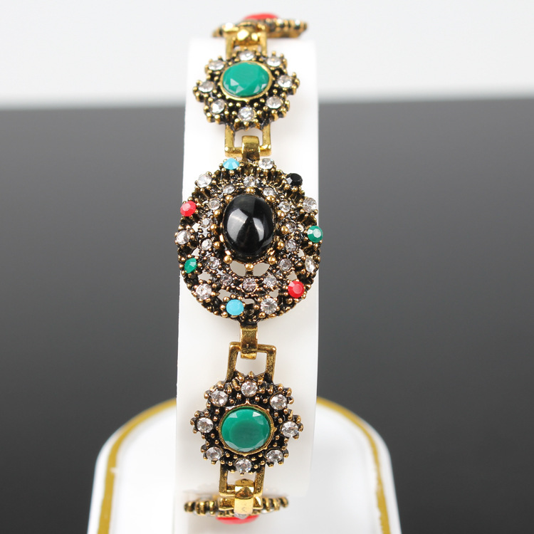 Браслет с цветными драгоценными камнями и бриллиантами в европейской и американской форме цветка Женский браслет Ювелирные изделия с гальваническим покрытием из сплава в наличии Мгновенно