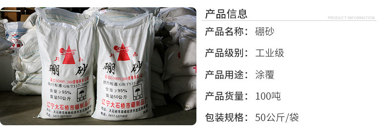 Прямые продажи с фабрики боракс Ляонин Дашицяо боракс национальный стандарт содержание 95% 50kg в мешке