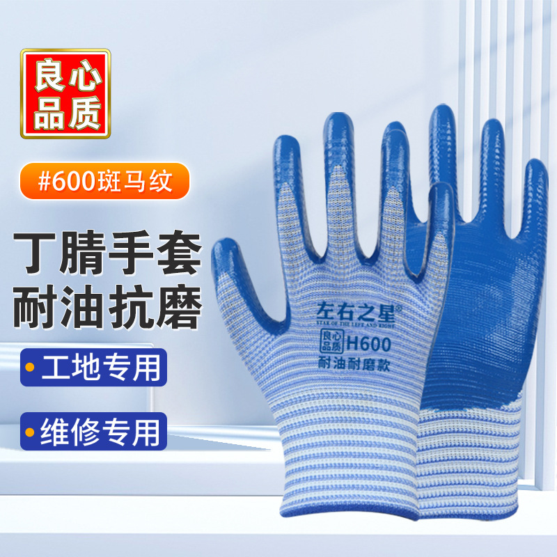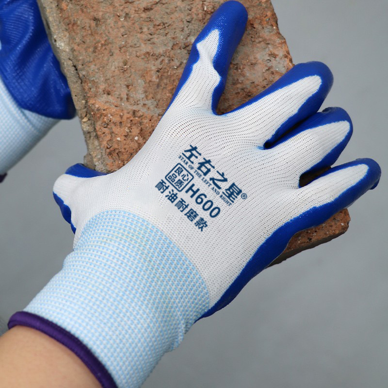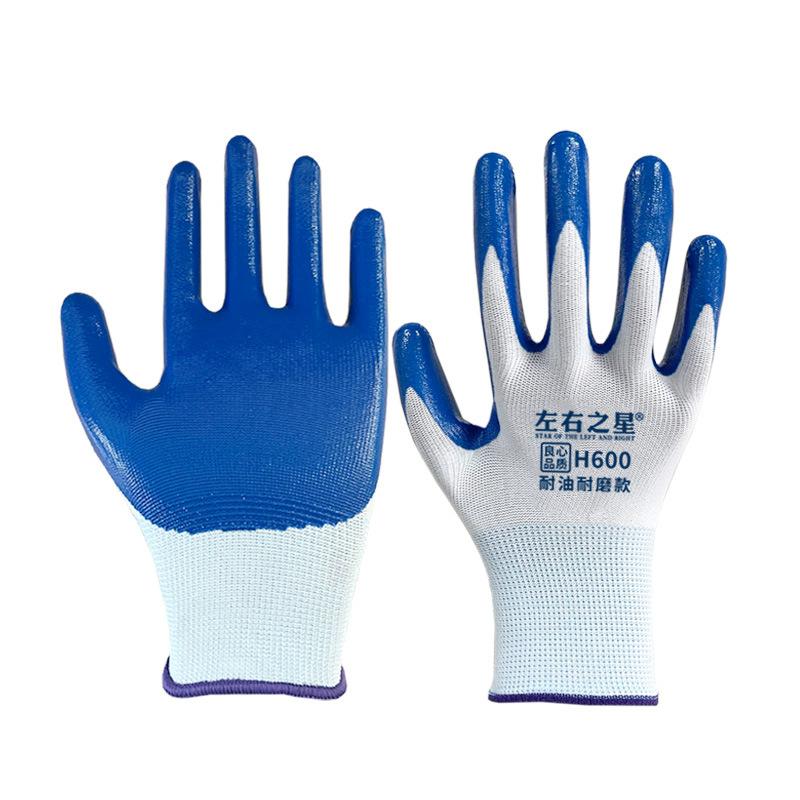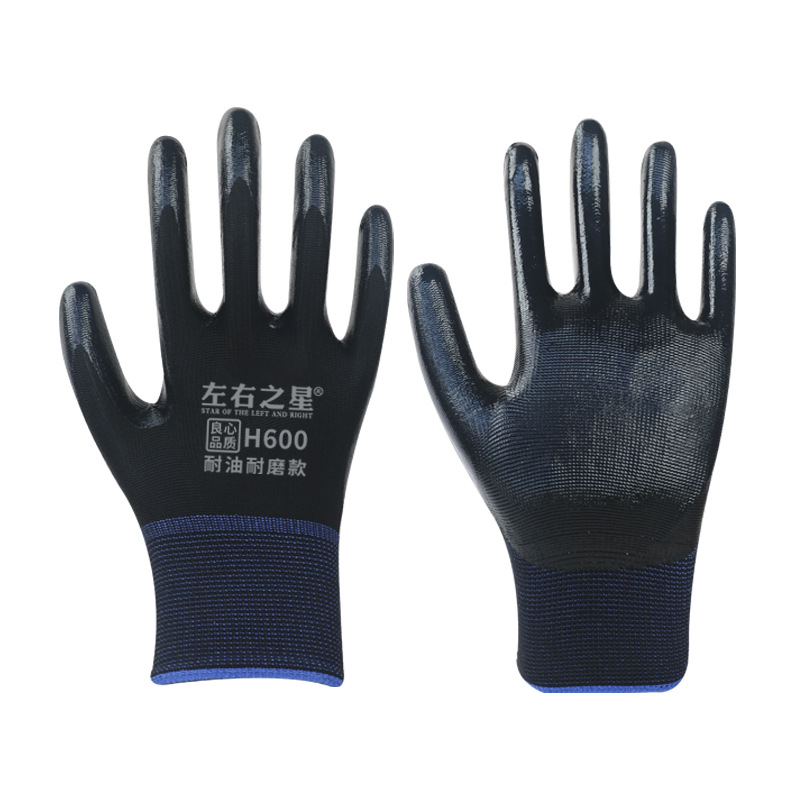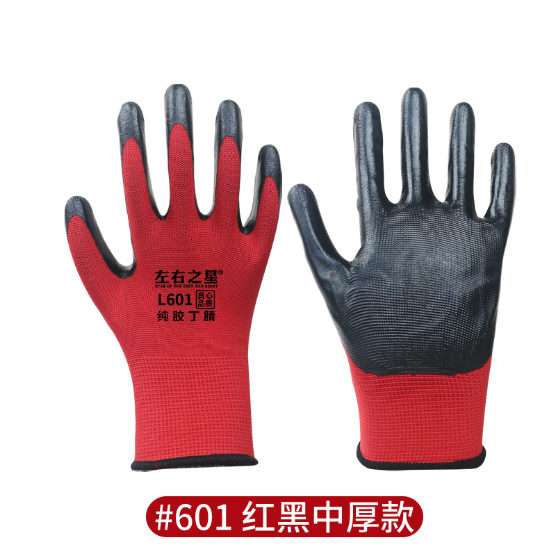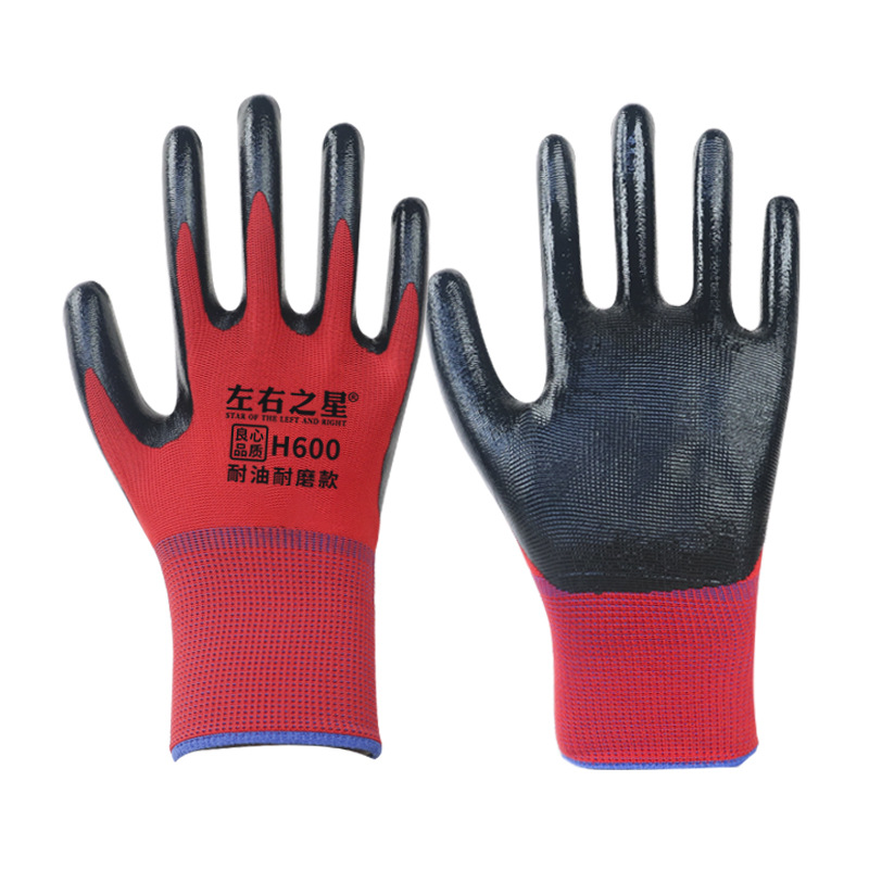 Перчатки нитриловые Left and Right Star 600, утолщенные, маслостойкие, износостойкие, рабочие перчатки для стройплощадки, перчатки с резиновым покрытием для защиты труда.