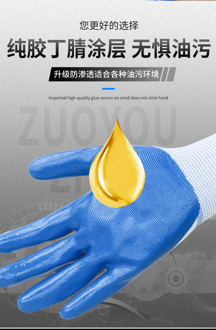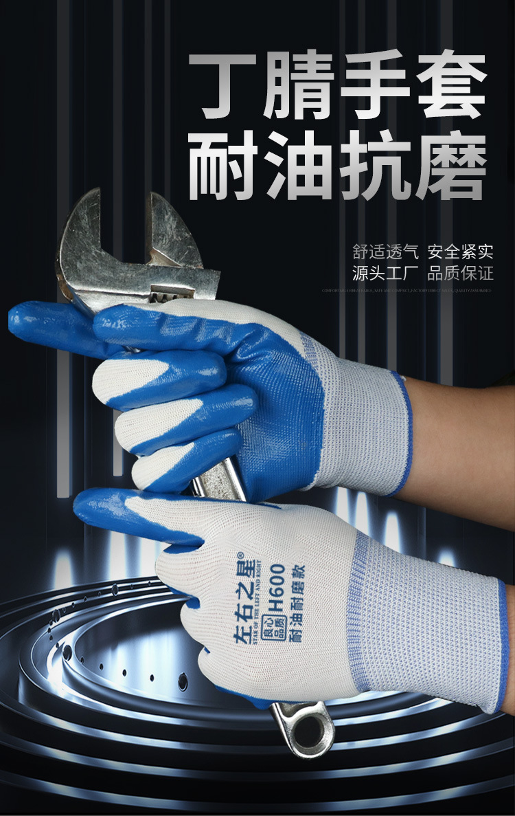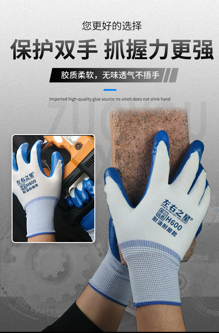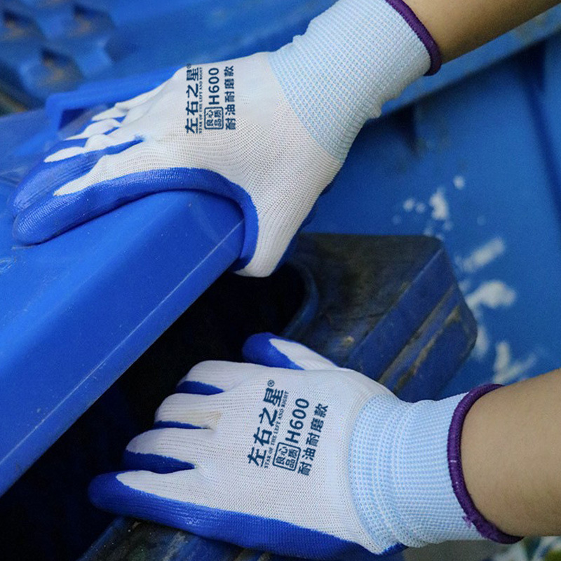 Перчатки нитриловые Left and Right Star 600, утолщенные, маслостойкие, износостойкие, рабочие перчатки для стройплощадки, перчатки с резиновым покрытием для защиты труда.