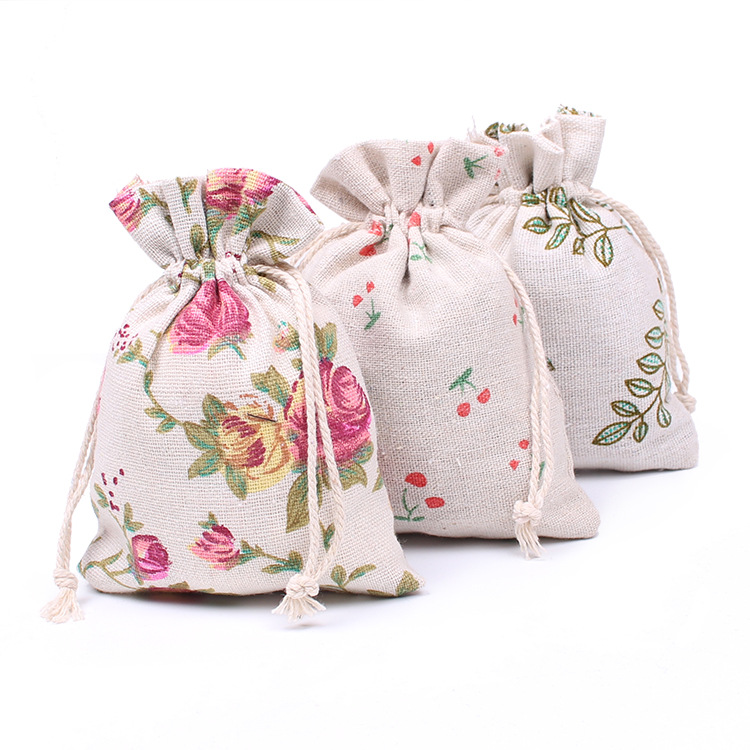 В наличии Сумка из хлопка и льна с принтом розы 10*14 Маленькая Льняная сумка на шнурке с имитацией льняной сумки для украшений