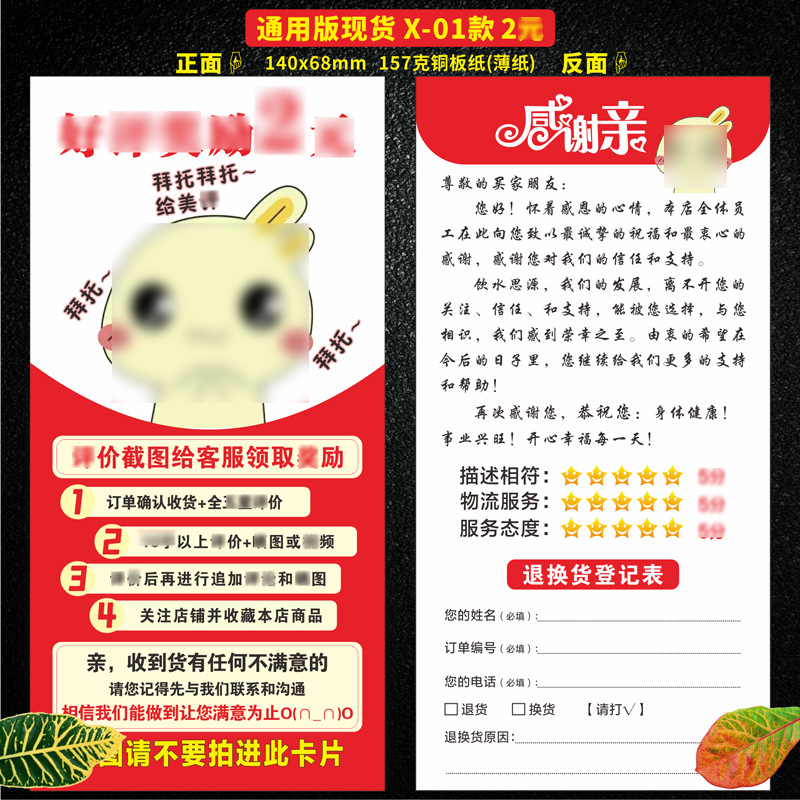 新款现货评论售后卡,价格优惠效果好,赶快抢购吧