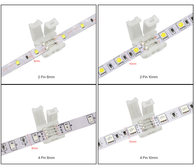 2P 10 мм 5050 Светодиодная монохромная световая полоса без сварки-зажим с пряжкой световая полоса без сварки стыковой соединитель