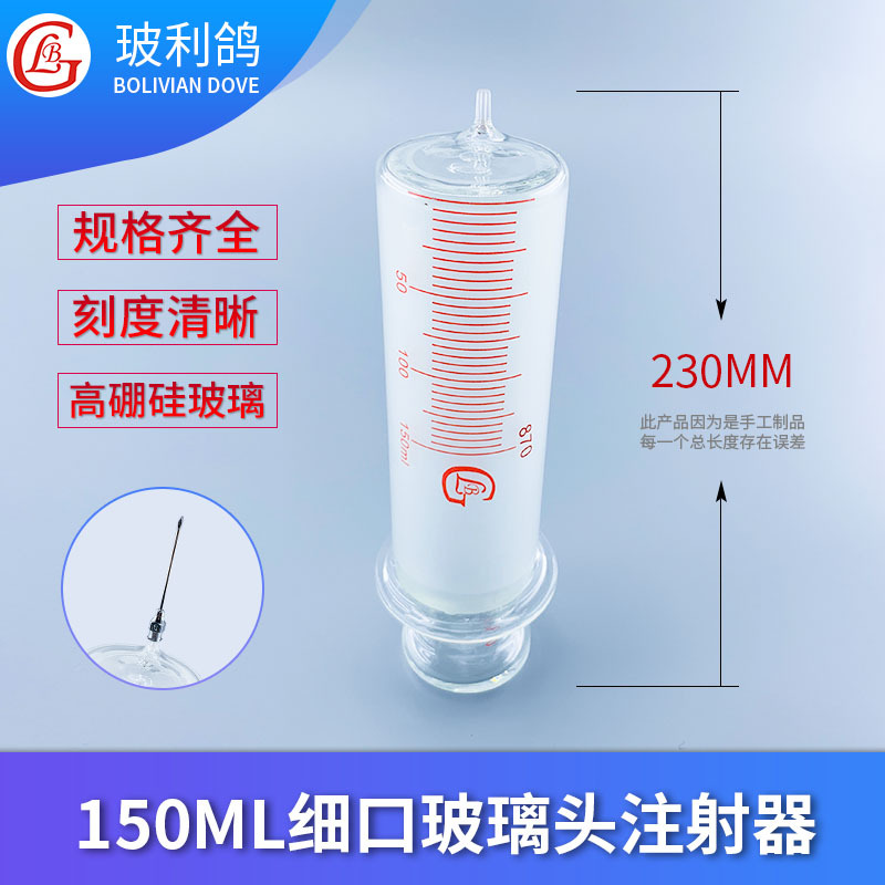 Шприц-трубка с иглой и наконечником, электрический стеклянный инъекционный шприц с точной шкалой, объемом 150 мл, 200 мл, 250 мл, 500 мл, 1000 мл