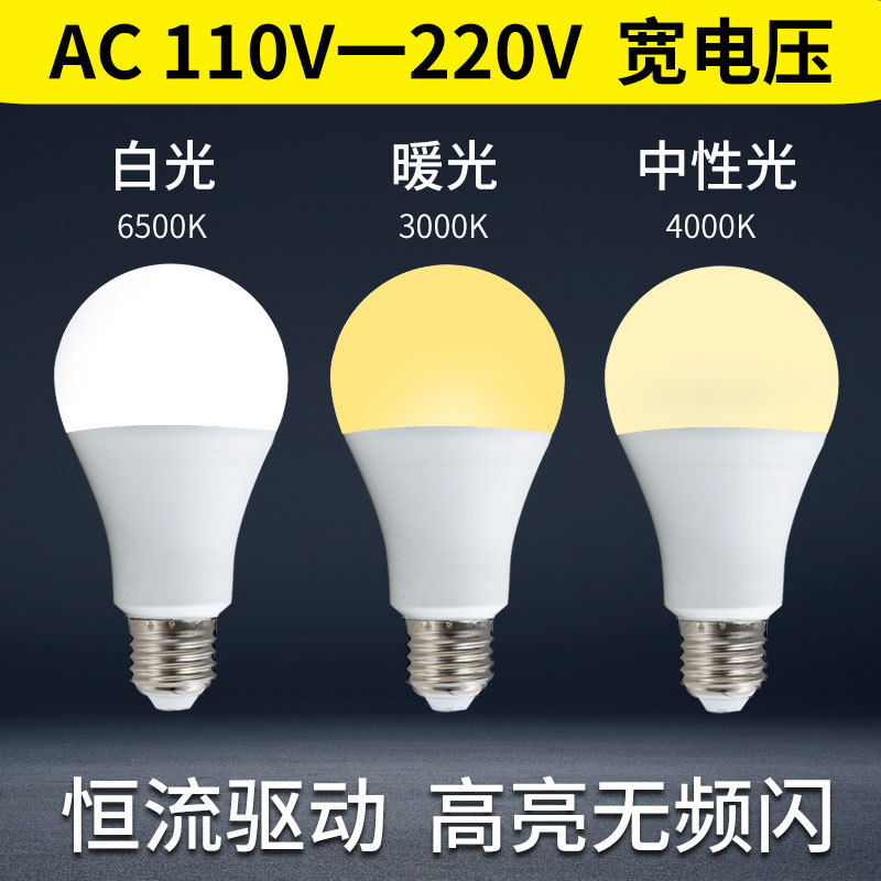 Светодиодная пластиковая алюминиевая лампа 110v220v постоянный ток Тайваньская зарубежная широкая лампа A19 лампа E27 винт B22