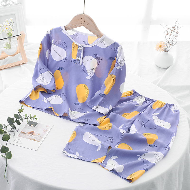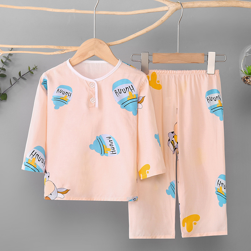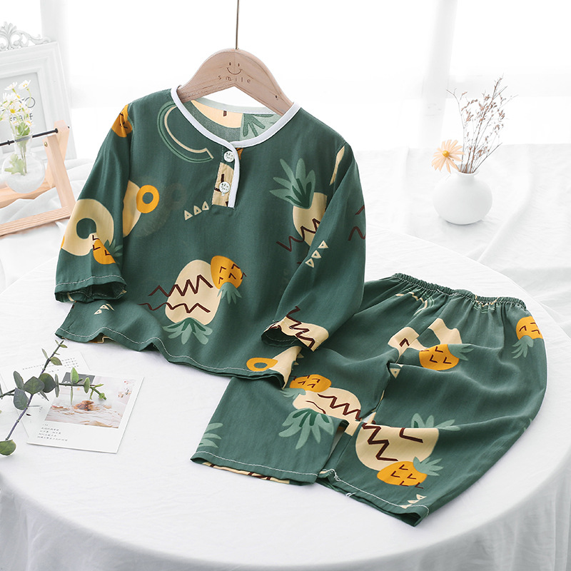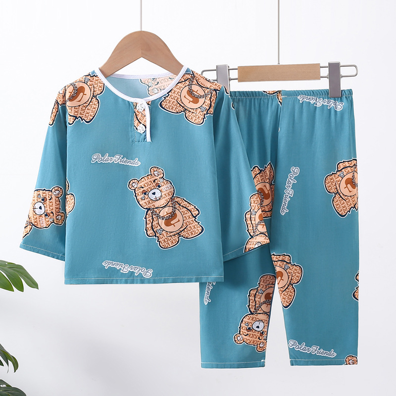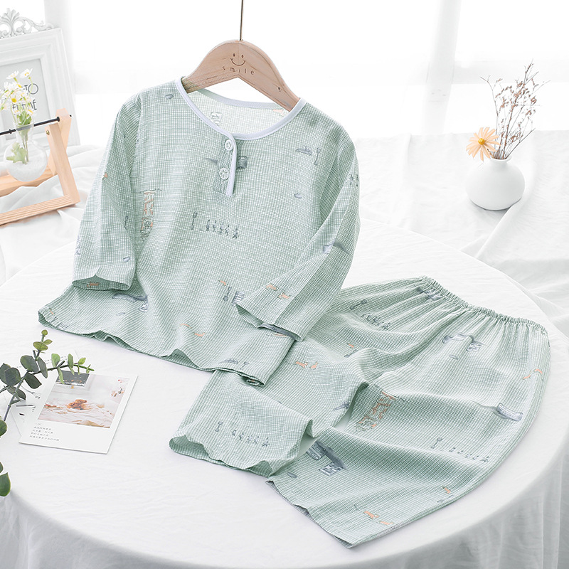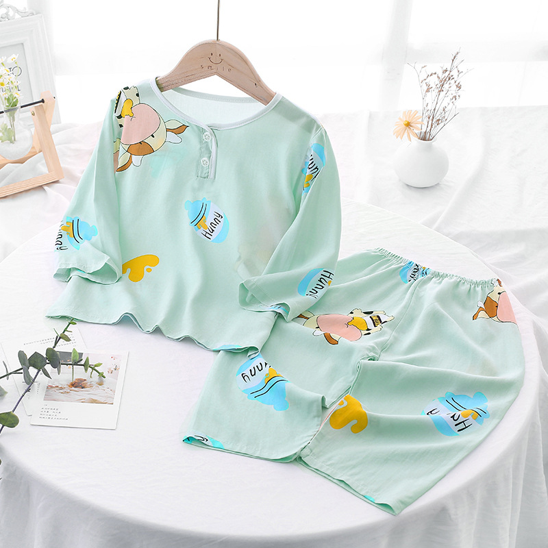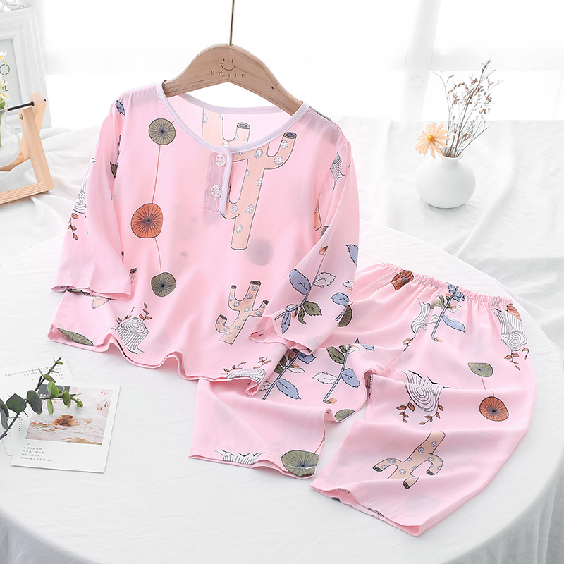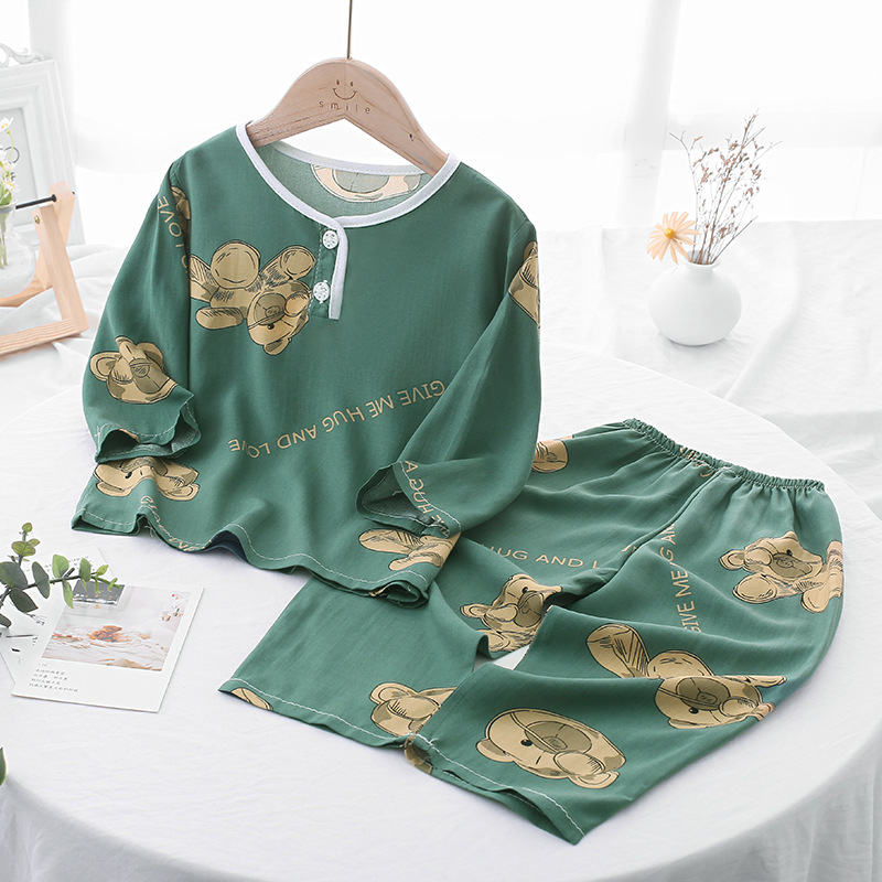 Детская хлопковая Шелковая пижама, летняя Домашняя одежда, костюм, тонкая хлопковая Шелковая пижама с длинными рукавами для мальчиков и девочек, детская одежда для кондиционирования воздуха