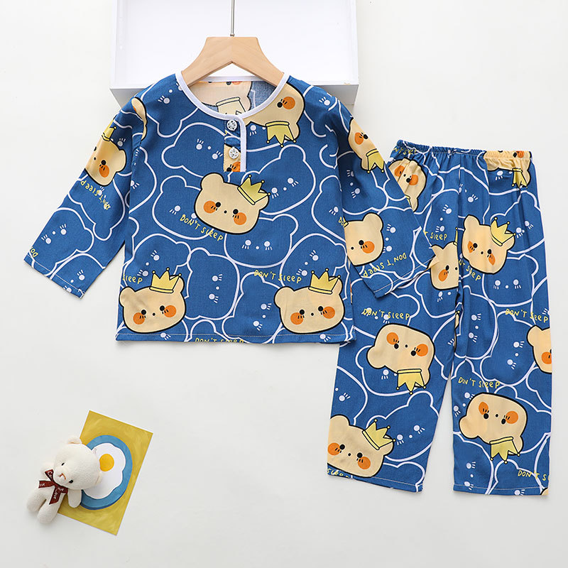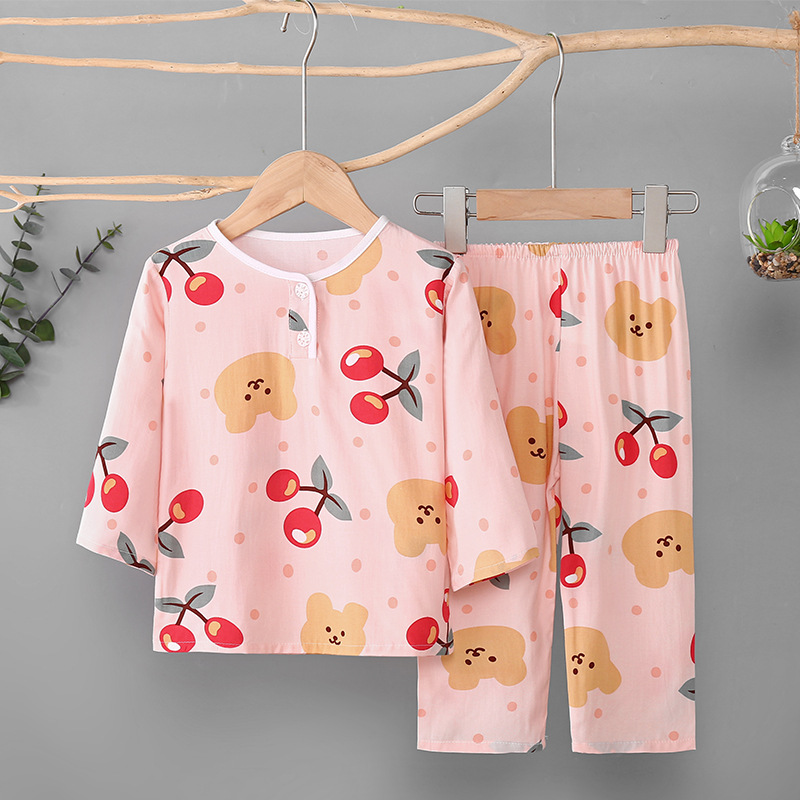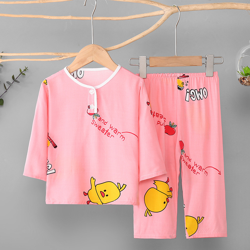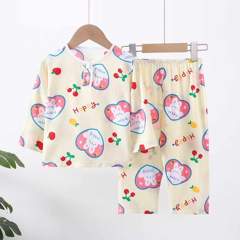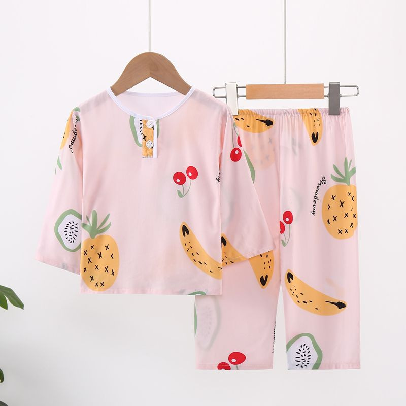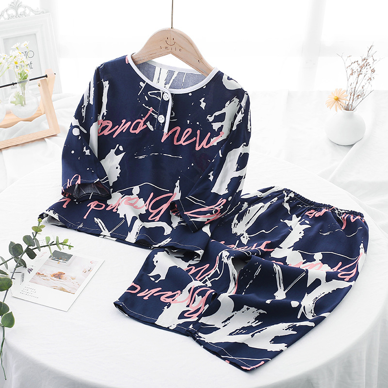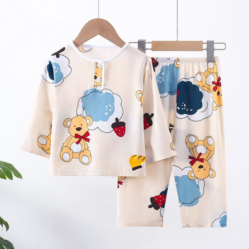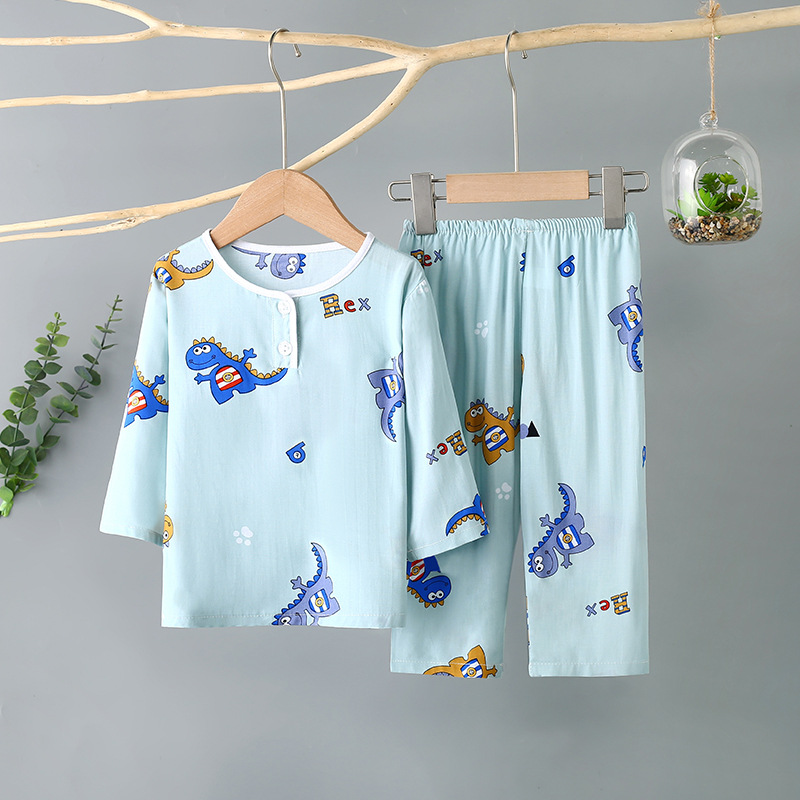 Детская хлопковая Шелковая пижама, летняя Домашняя одежда, костюм, тонкая хлопковая Шелковая пижама с длинными рукавами для мальчиков и девочек, детская одежда для кондиционирования воздуха