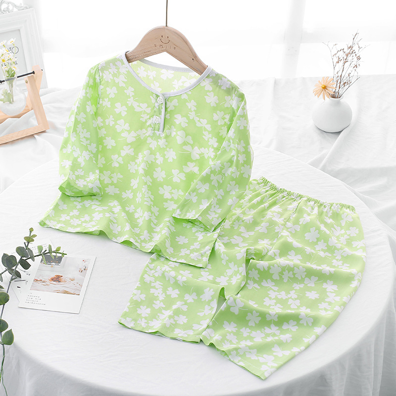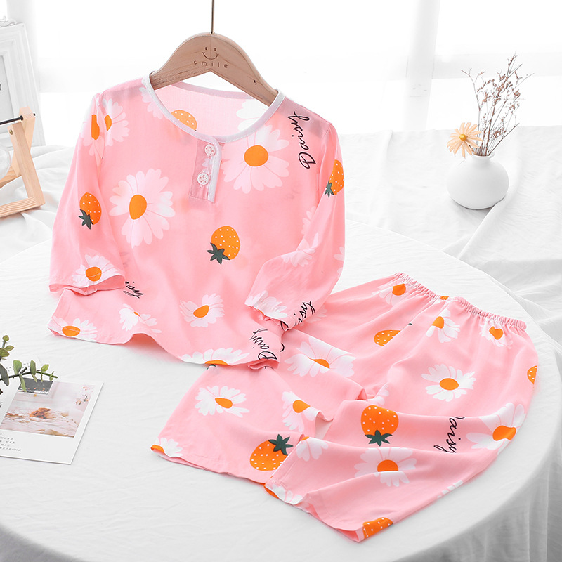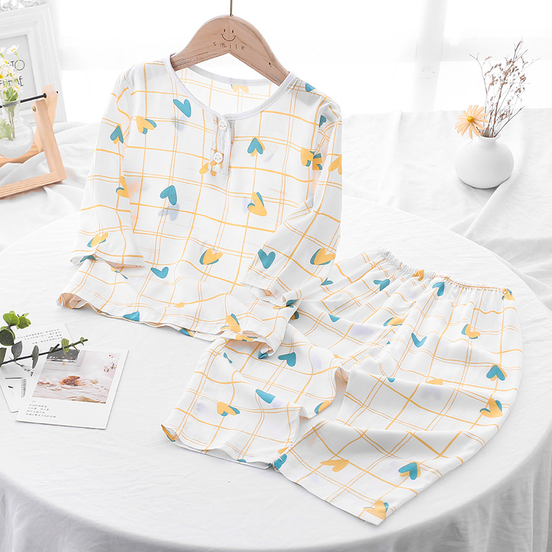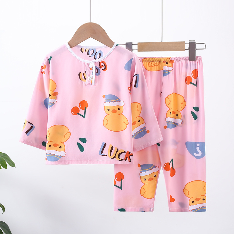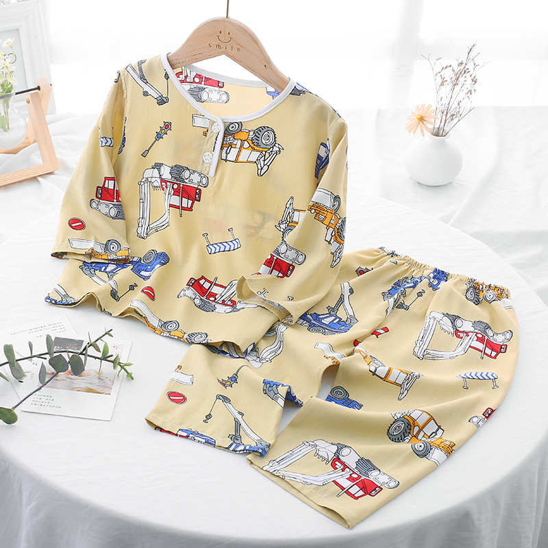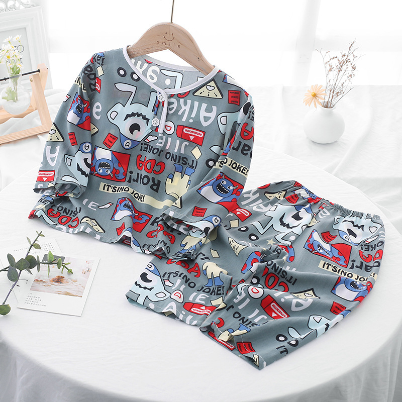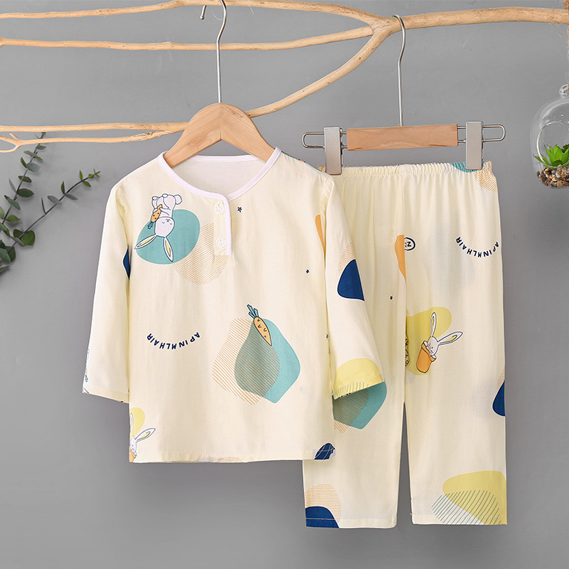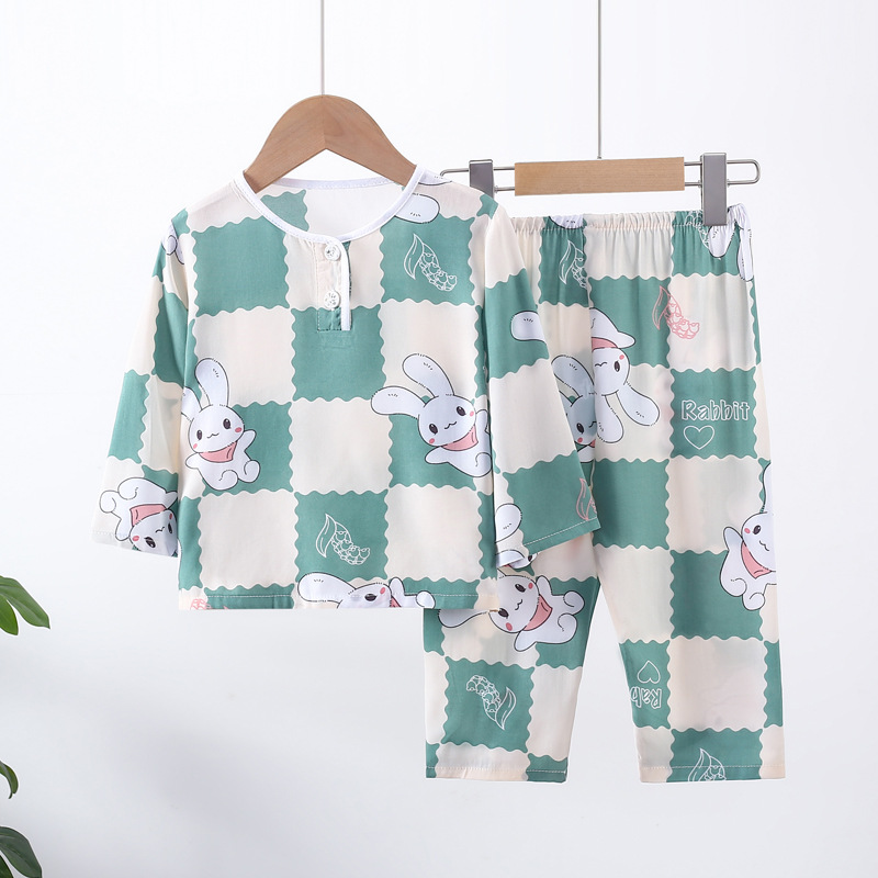 Детская хлопковая Шелковая пижама, летняя Домашняя одежда, костюм, тонкая хлопковая Шелковая пижама с длинными рукавами для мальчиков и девочек, детская одежда для кондиционирования воздуха